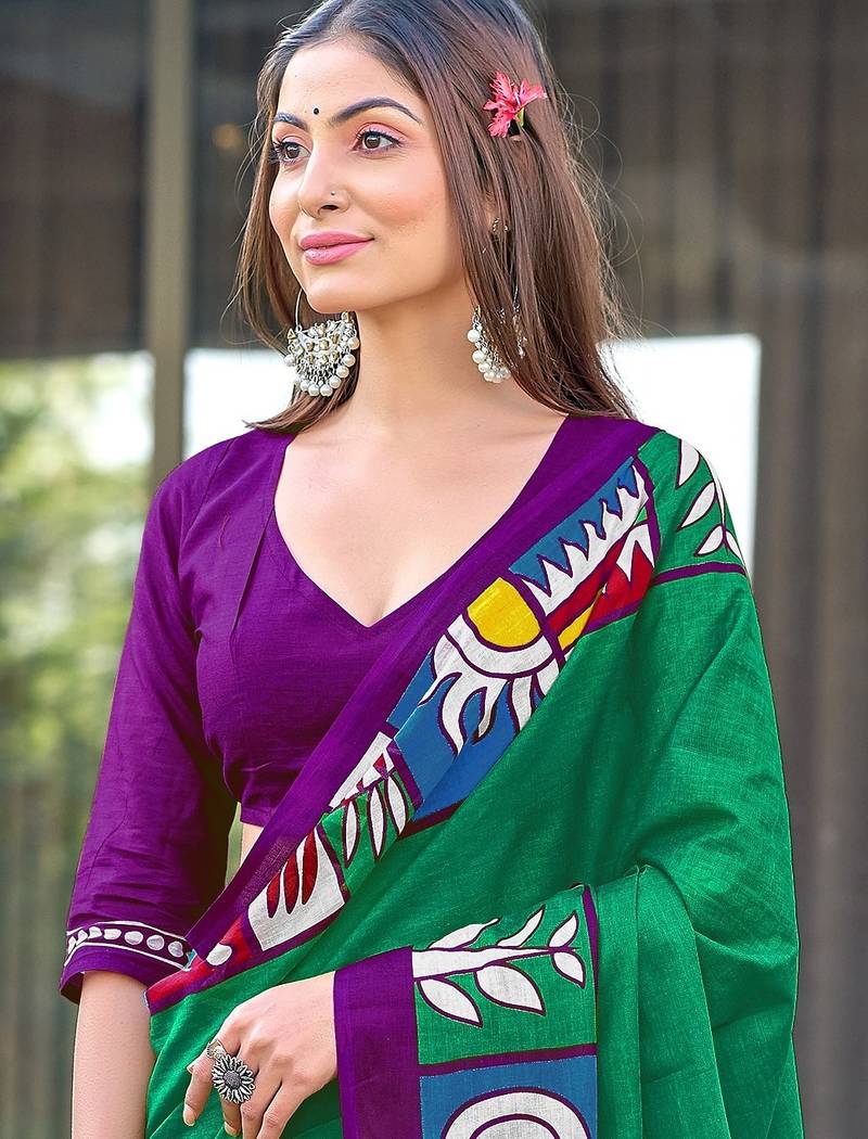 | Product Name | Teal Green Block Print Soft Pure Cotton Saree With Blouse. | |