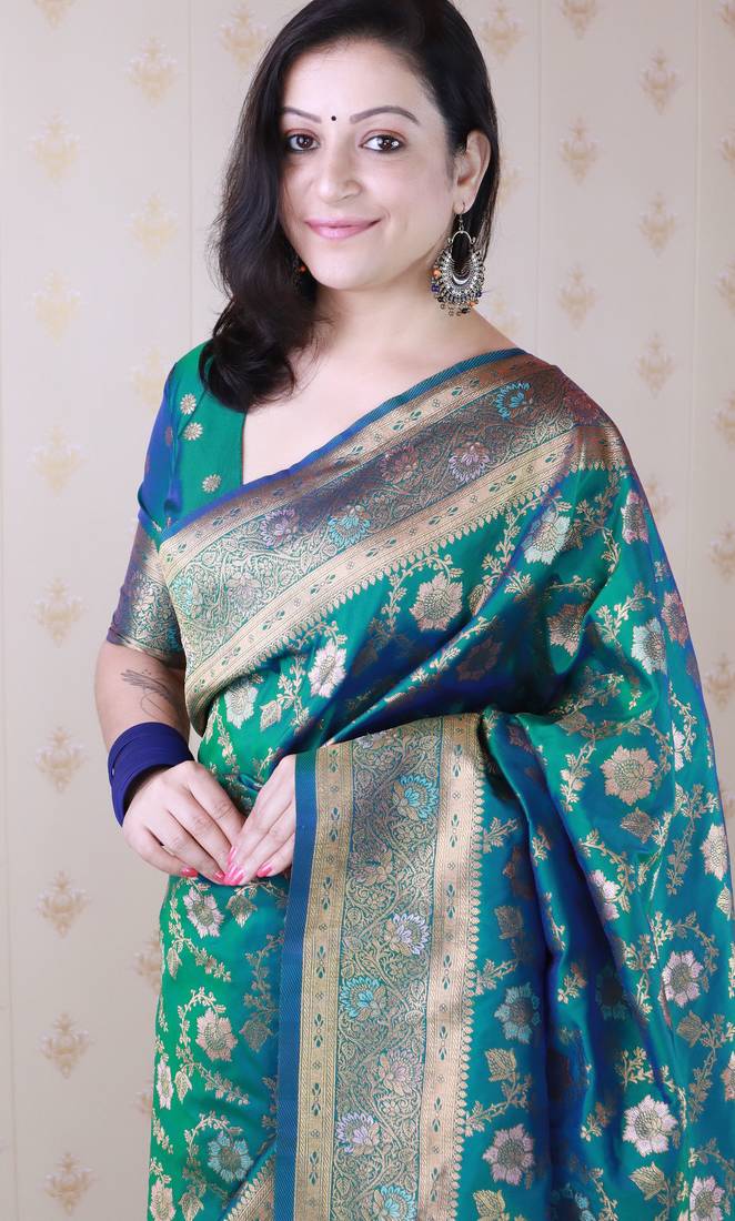 | Product Name | Teal Green Woven Self Design Pure Silk Banarasi Saree With Blouse | |