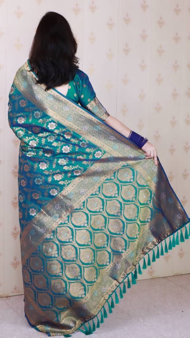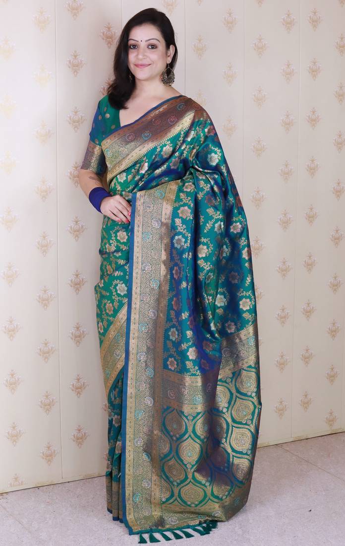 | • | Saree | : | Color- Teal / Fabric- Banarasi Silk |
