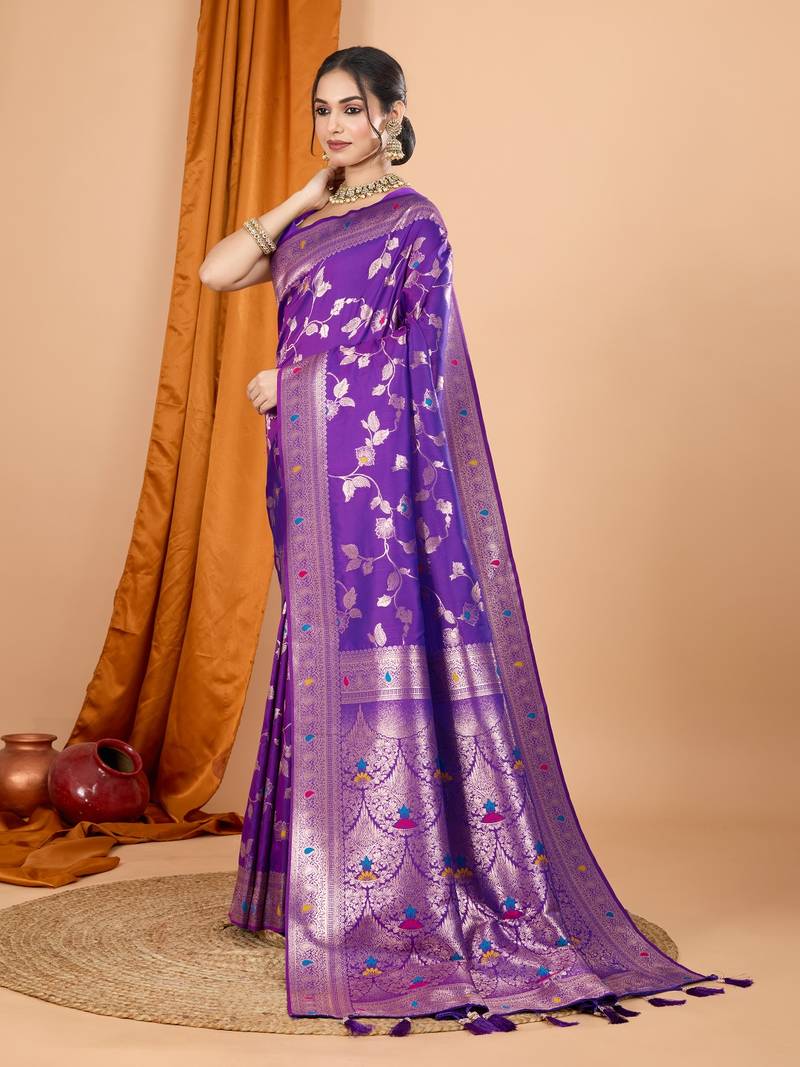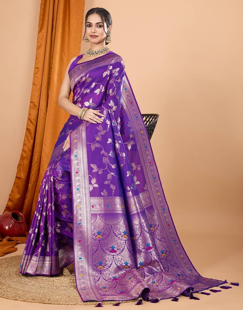 | Product Name | Violet Woven Self Design Embellished Pure Silk Banarasi Saree With Blouse | |