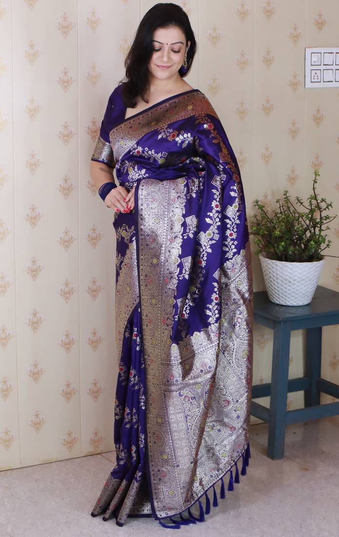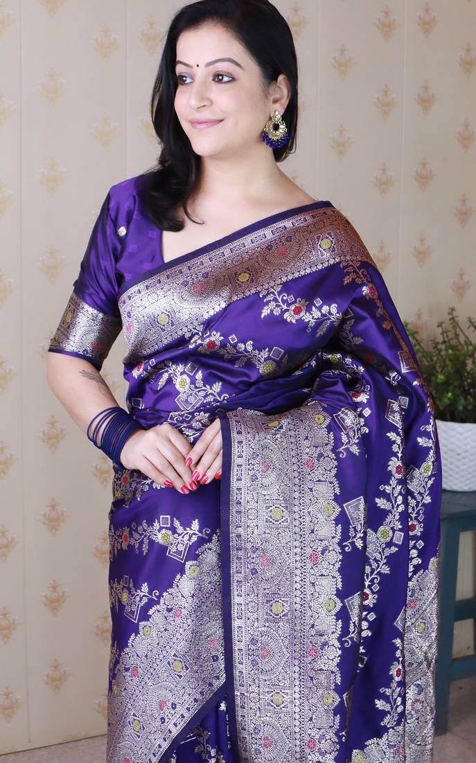 | Product Name | Violet Woven Self Design Pure Silk Banarasi Saree With Blouse | |