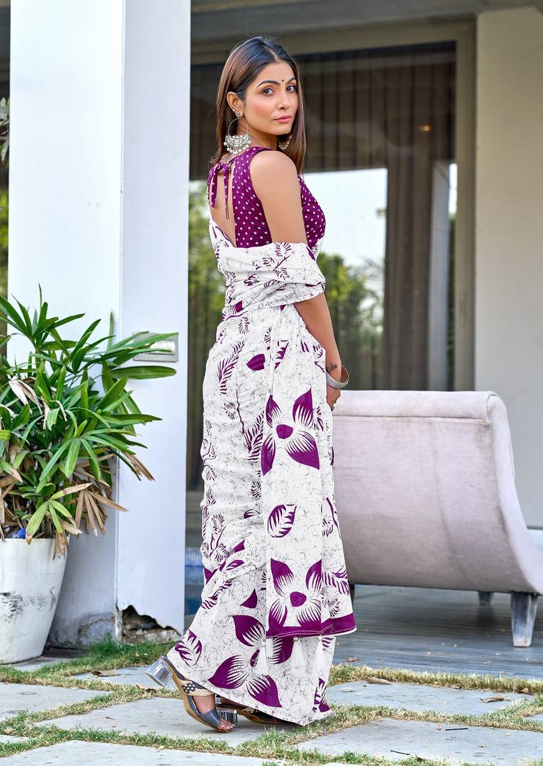 | Product Name | White Floral Print Mulmul Cotton Saree With Blouse. | |