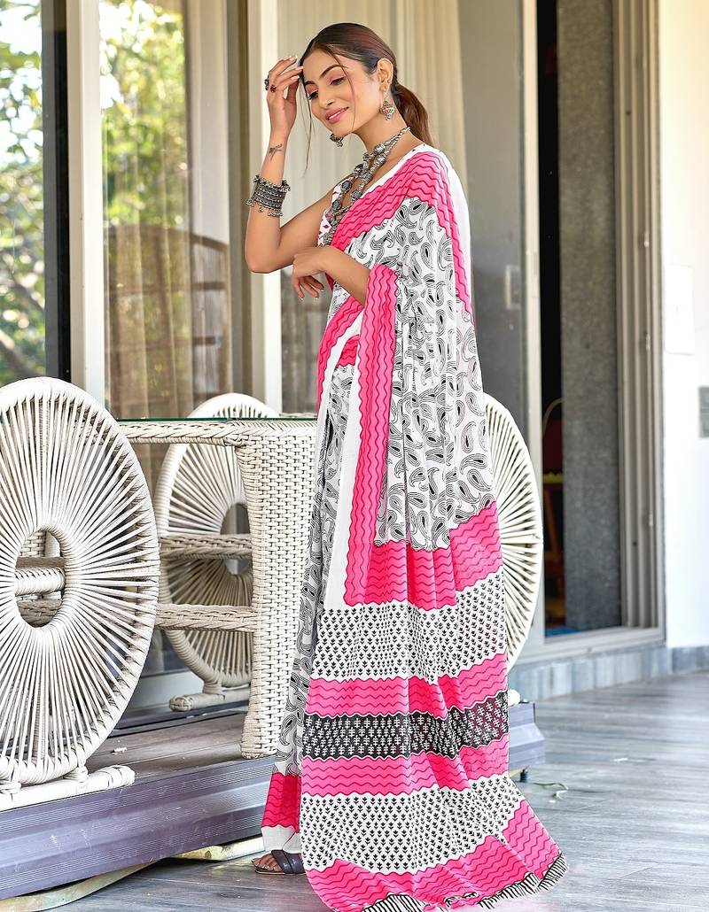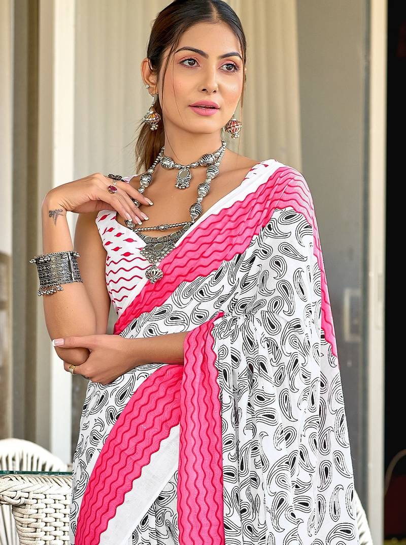 | Product Name | White Paisley Print Mulmul Cotton Saree With Blouse. | |