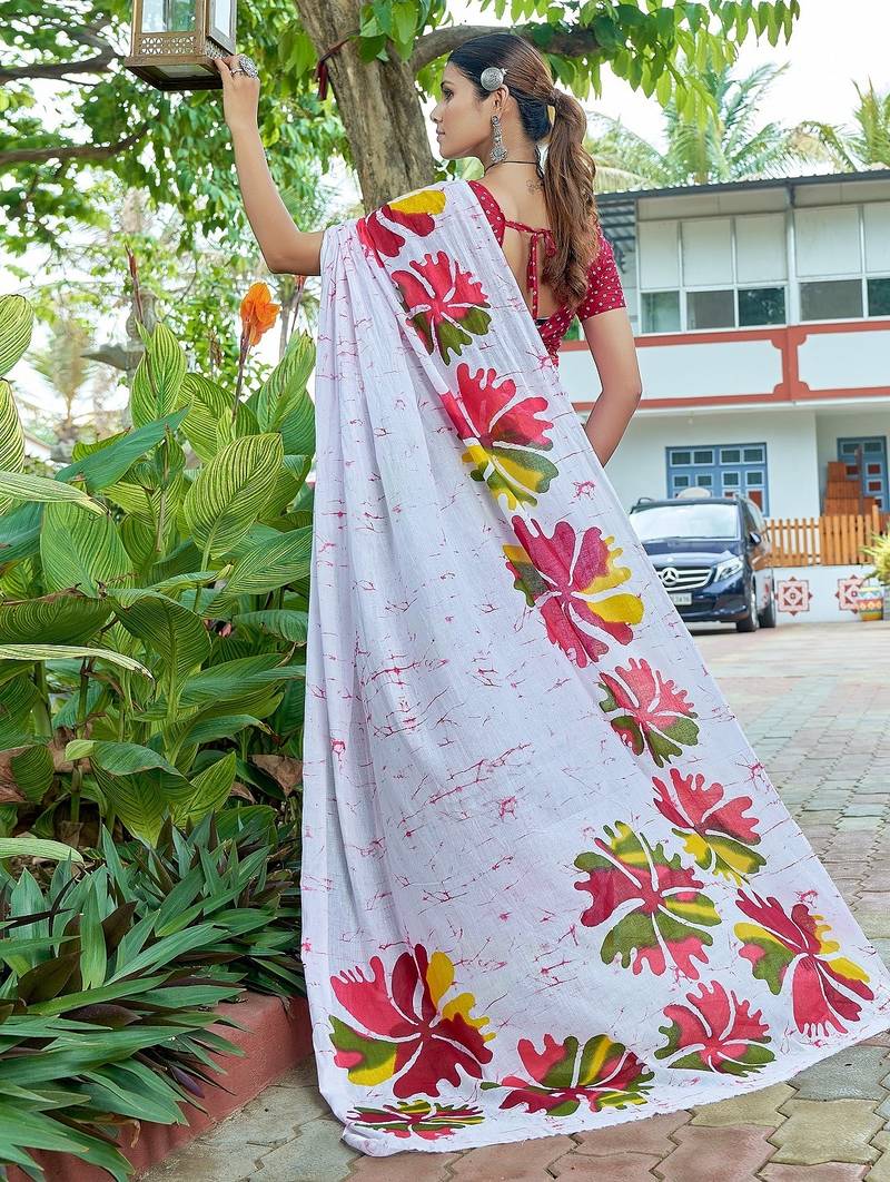| Product Name | White Printed Mulmul Cotton Saree With Blouse. | |