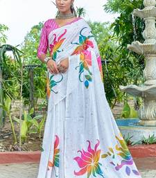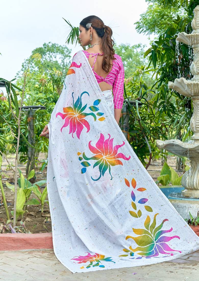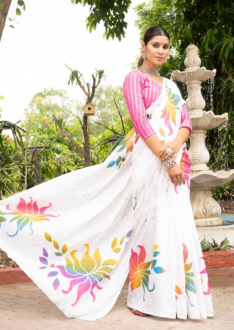 | Product Name | White Printed Mulmul Cotton Saree With Blouse. | |