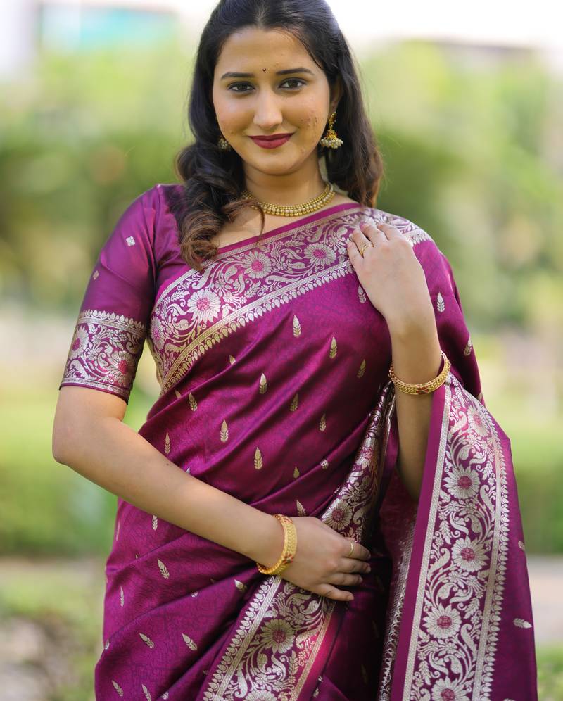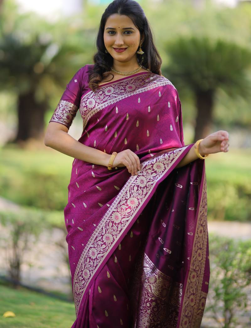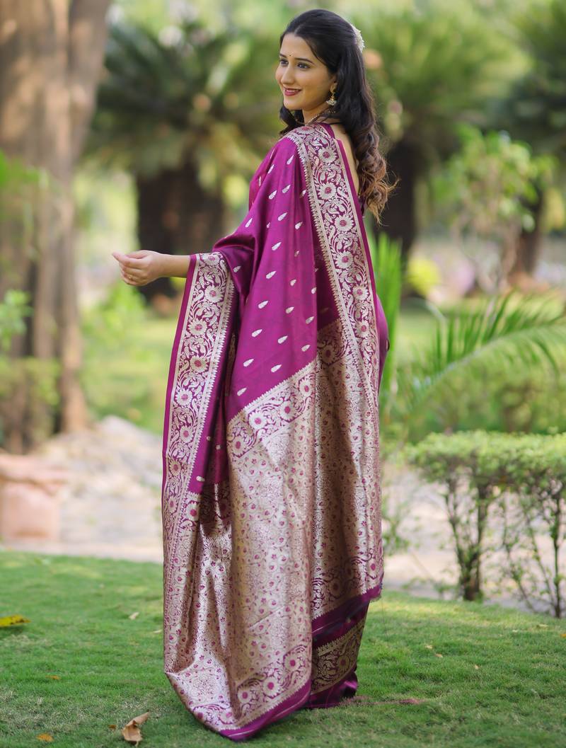 | Product Name | Wine Floral, Zari Work Banarasi Silk Saree With Blouse | |