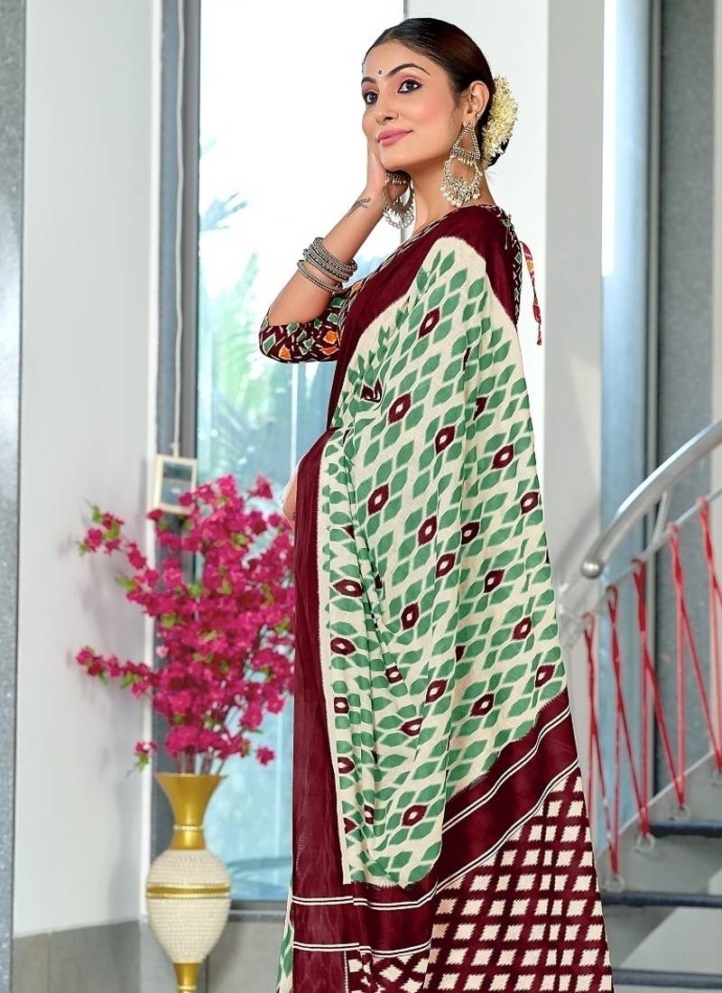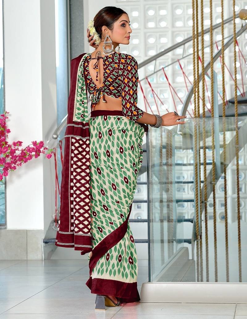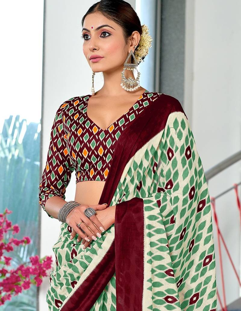 | Product Name | Wine Ikkat Print Mulmul Cotton Saree With Blouse. | |
