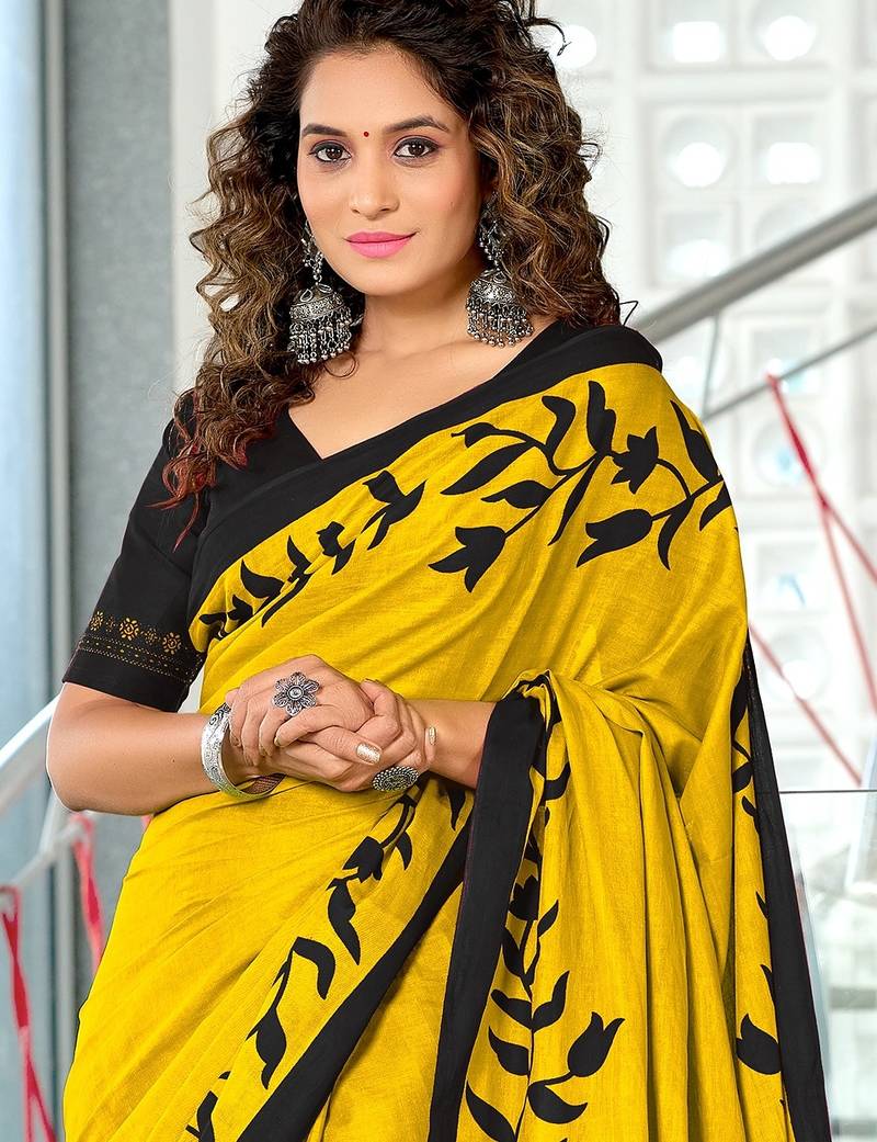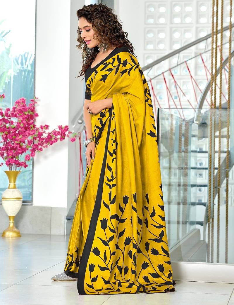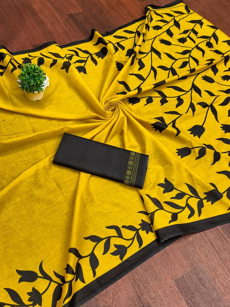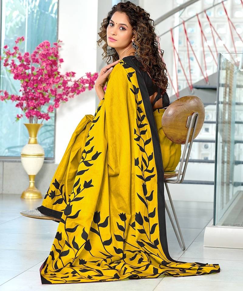 | Product Name | Yellow Floral Print Mulmul Cotton Saree With Blouse. | |