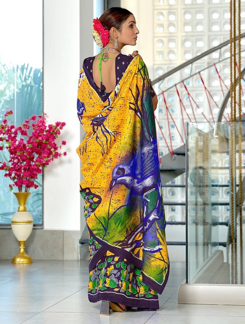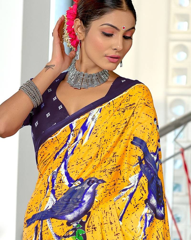 | Product Name | Yellow Floral Print Soft Pure Cotton Saree With Blouse. | |
