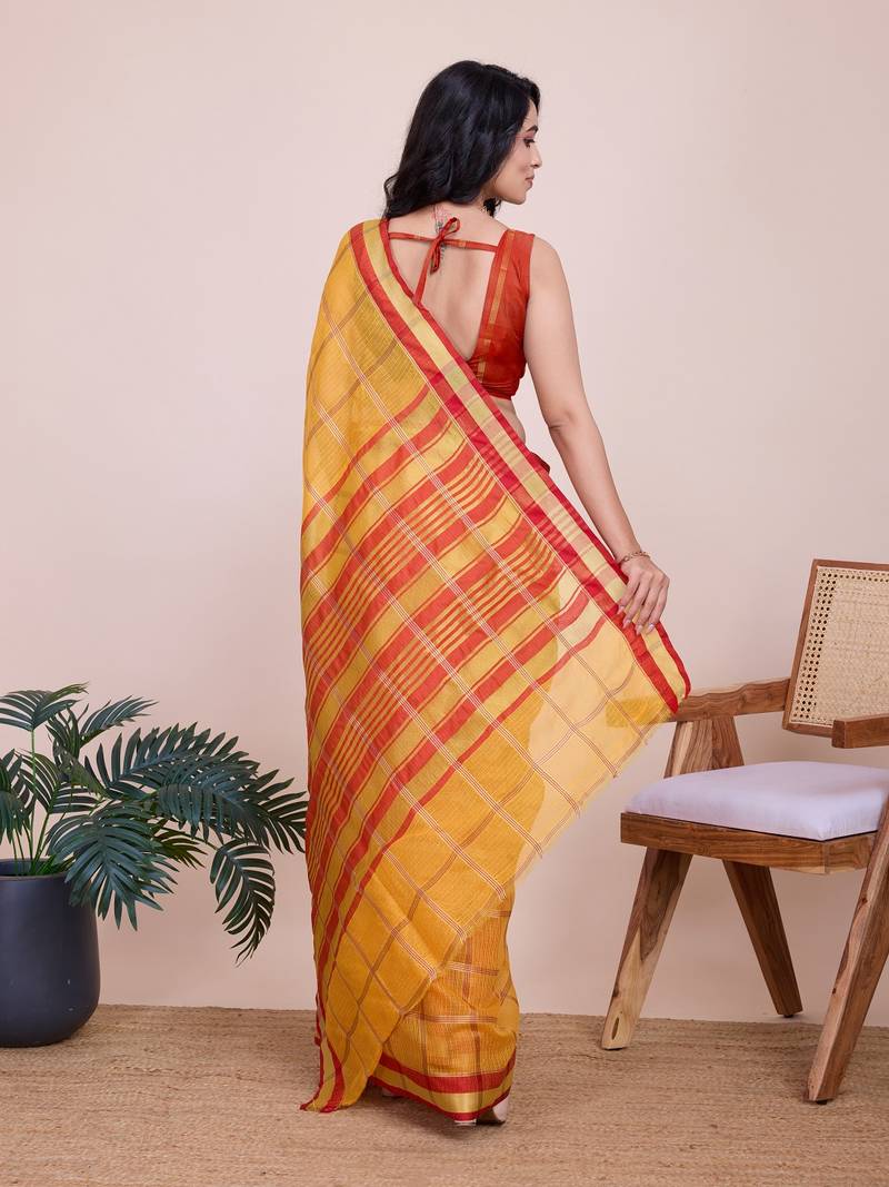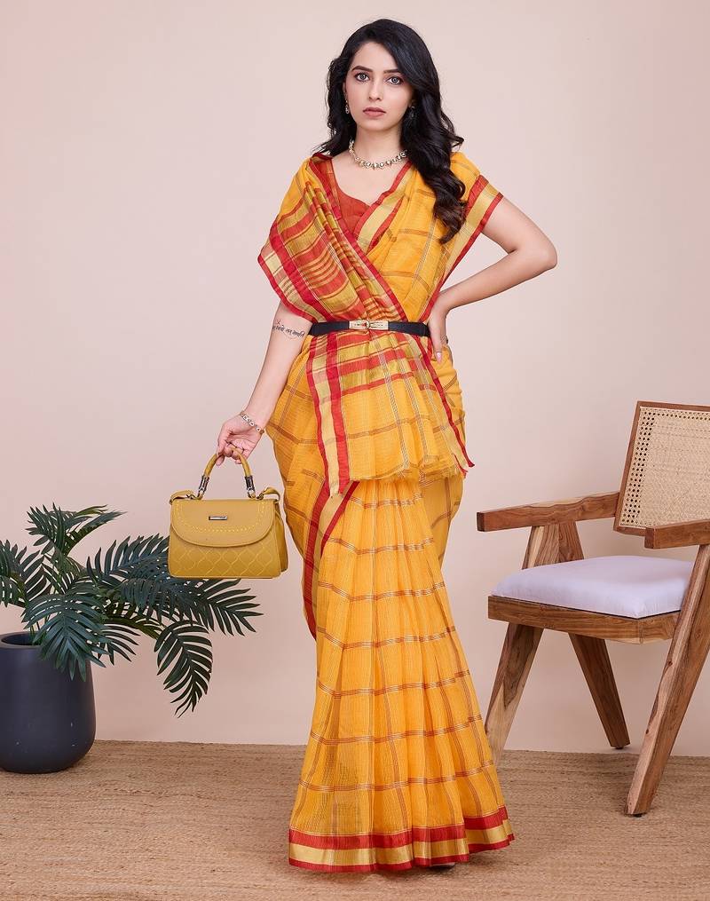 | Product Name | Yellow Woven Checkered Striped Cotton Silk Kota Doria Saree With Blouse | |