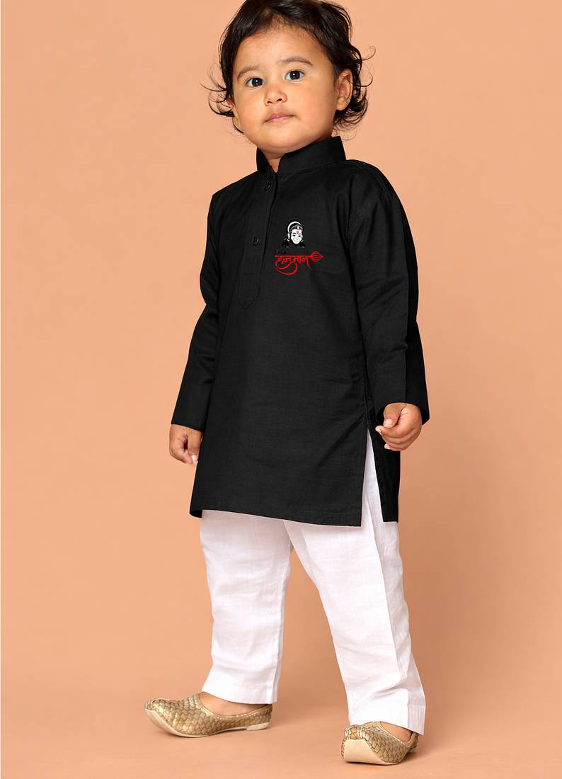 Boys black pure cotton kurta pyjama set hanuman jayanti special print
