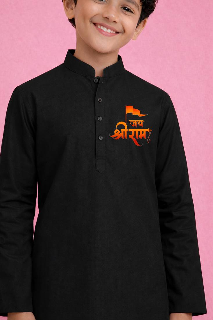 | Product Name | Boys Black Kurta Pyjama Set With Jai Shree Ram Print | |