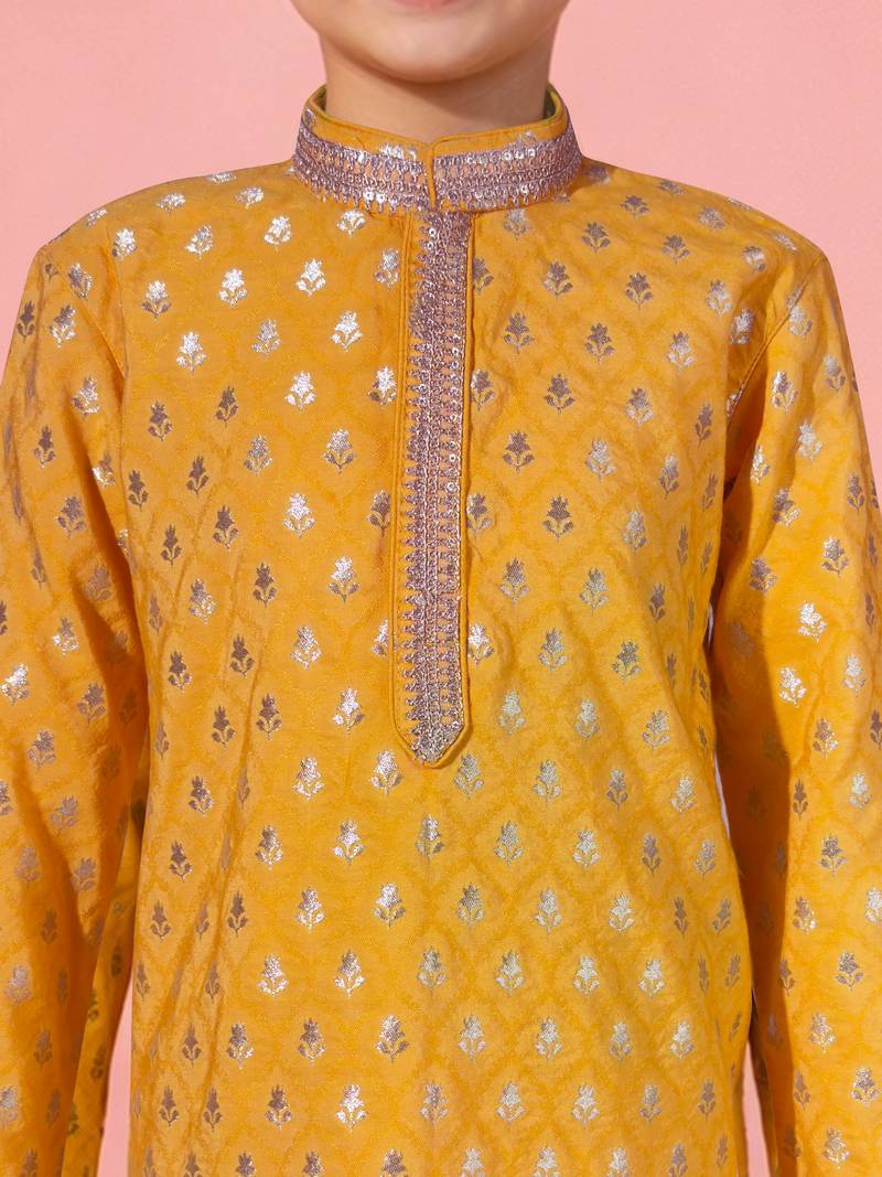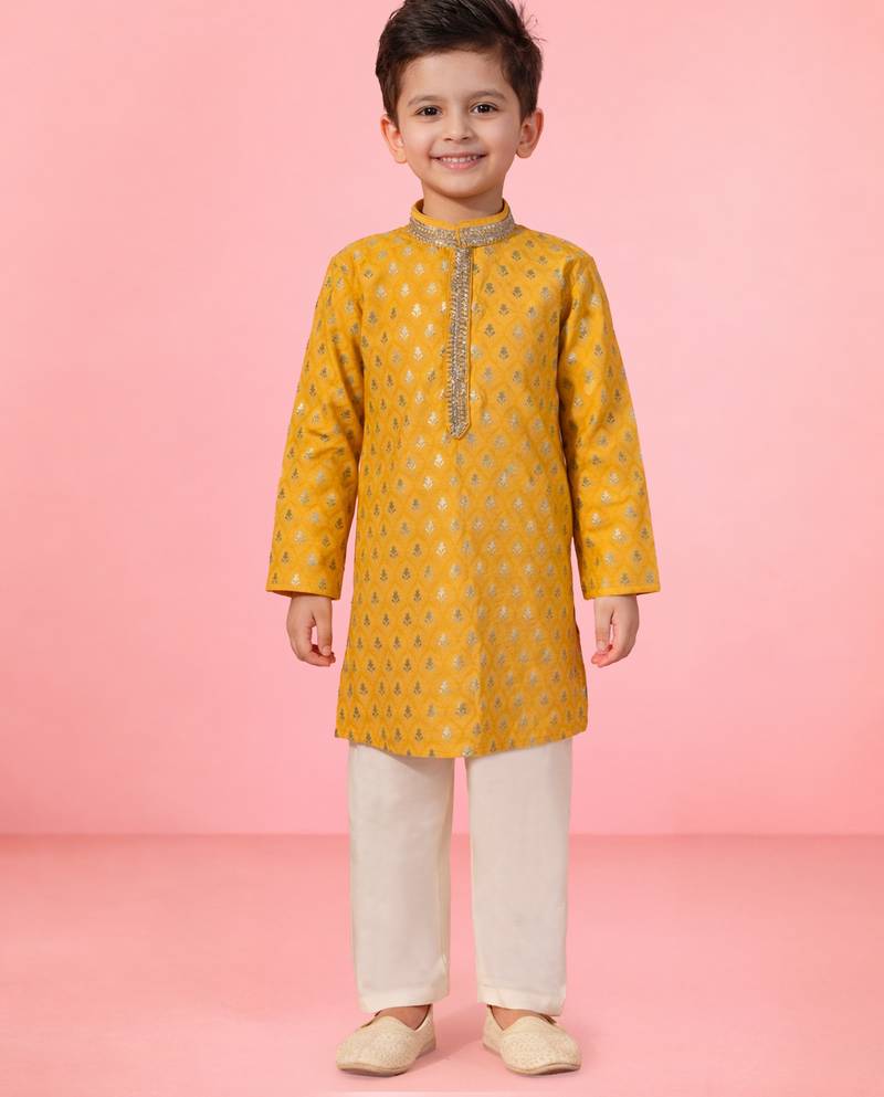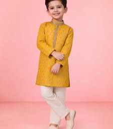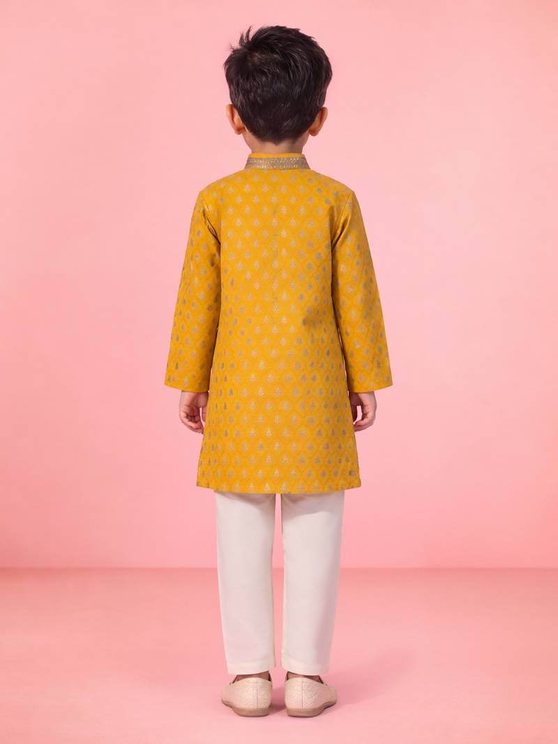 | Product Name | Boys Yellow Jacquard Silk Blend Kurta With Cream Pyjama Wedding & Festive Wear | |