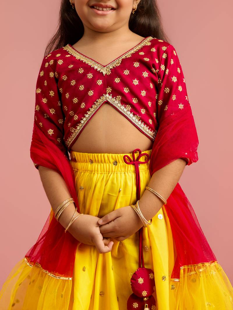 | Product Description | Let Your Girl Step Into Celebrations With This Sparkling Wedding Ready Lehenga Set From . Brand: Color: Elegant Ethnic Shade Falsa With Yellow Contrast Fabric: Premium Festive Net Fabric With Soft Crepe Lining Work: Trendy Sequin Embellished Cropped Choli Pattern: Graceful Floral Foil Print All Over Neck: Stylish V Neck Design Sleeves: Comfortable Glass Sleeves Choli Length: Modern Cropped Length Closure: Secure Hook And Eye Fastening Lehenga Fit: Flared Net Lehenga With Elasticated Waistband Occasion Wear: Ideal For Weddings, Diwali, Navratri, Janmashtami, Durga Puja And Festive Events Sizes Available: Girls 22 To 30 Designed With Lightweight Material And Elegant Embellishments, This Outfit Ensures Kids Stay Comfortable While Looking Glamorous And Ethnic Perfect. |