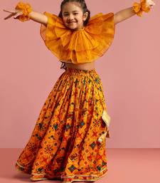 | Product Name | Girls Mustard Printed Rayon Patola Lehenga Choli Set With Ruffles & Ruffled Hand Gloves | |