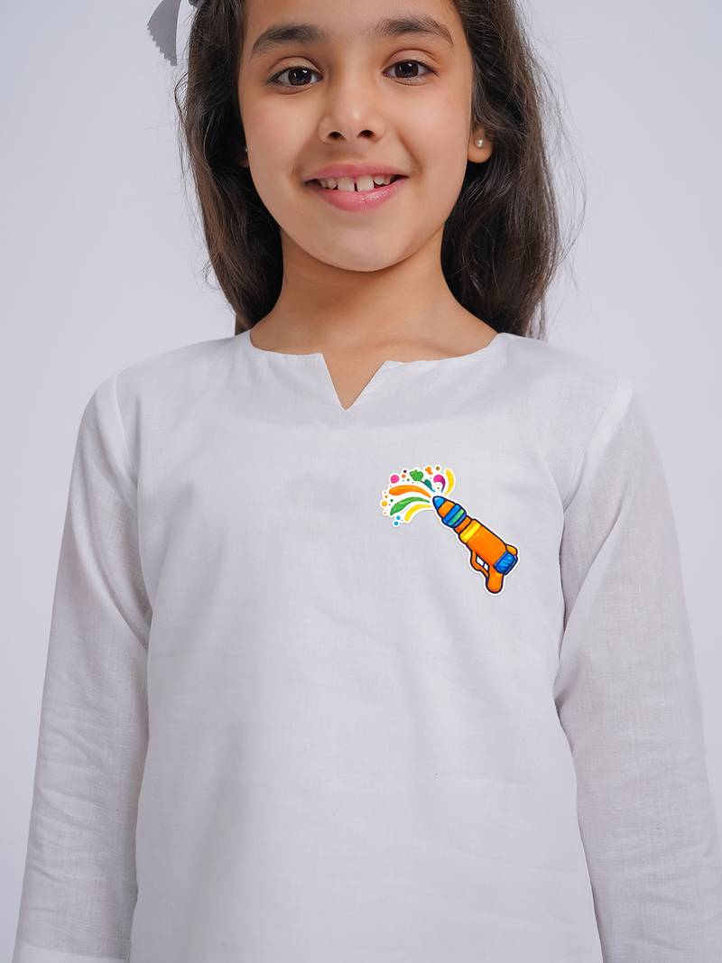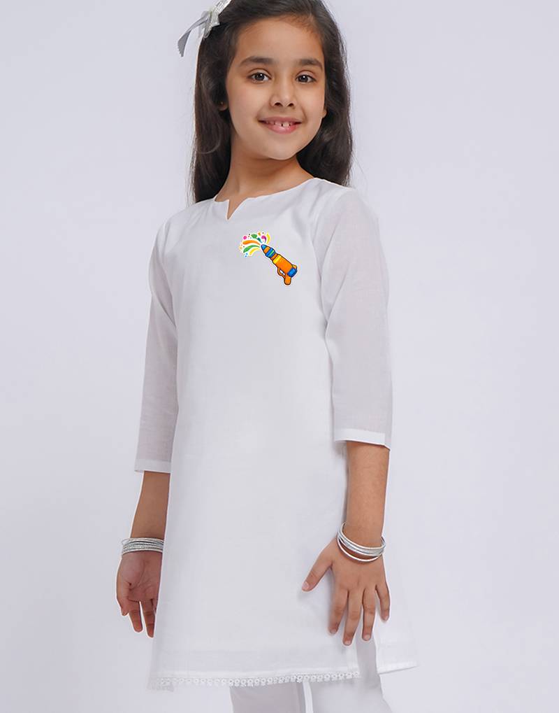 | Product Name | Girls Wear White Cambric Kurta With Holi Chest Print | |