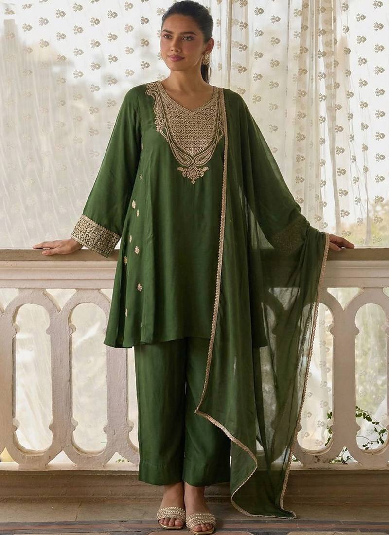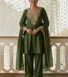 Dark-green embroidered cotton silk salwar suit stitched