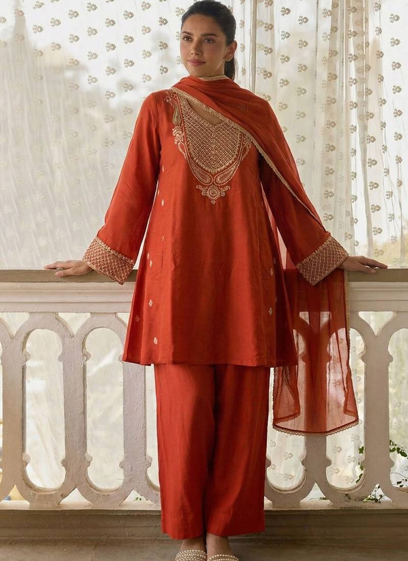 | Product Name | Dark Orange Embroidered Cotton Silk Salwar Suit | |