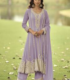 Light-purple embroiderd premium georgette anarkali suit stitched
