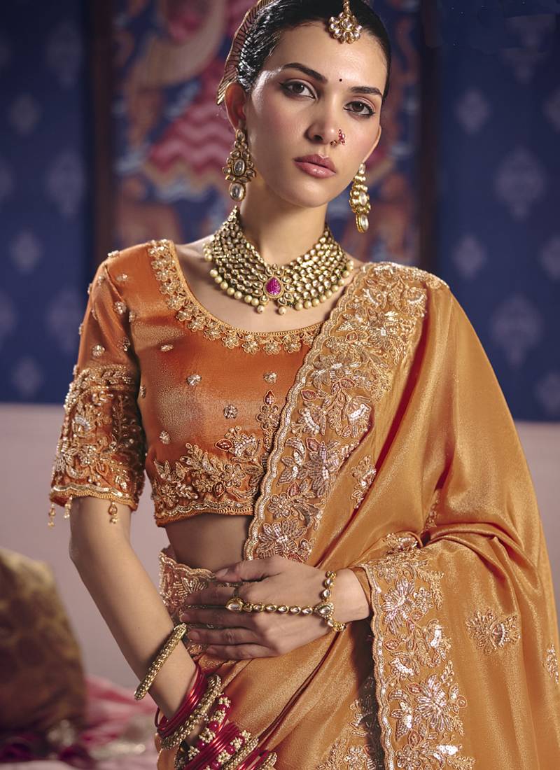 | Product Name | Orange Silk Embroidered Wedding Wear Saree | |