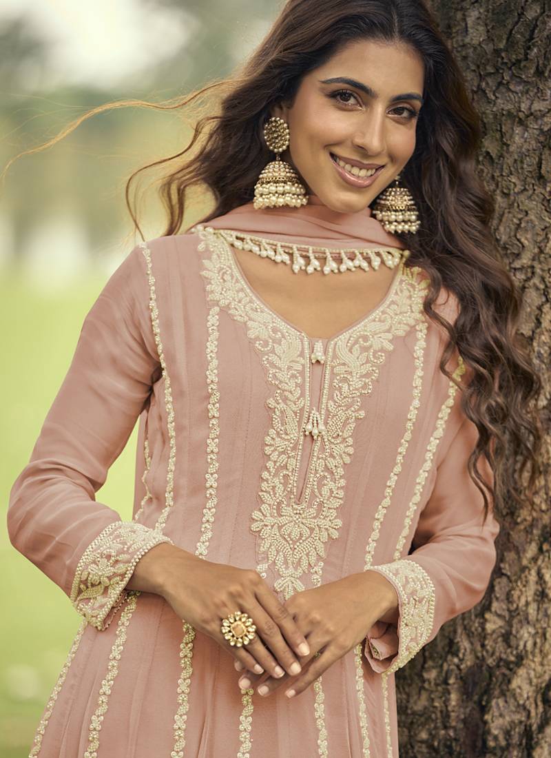 | Product Name | Peach Embroiderd Premium Georgette Anarkali Suit | |