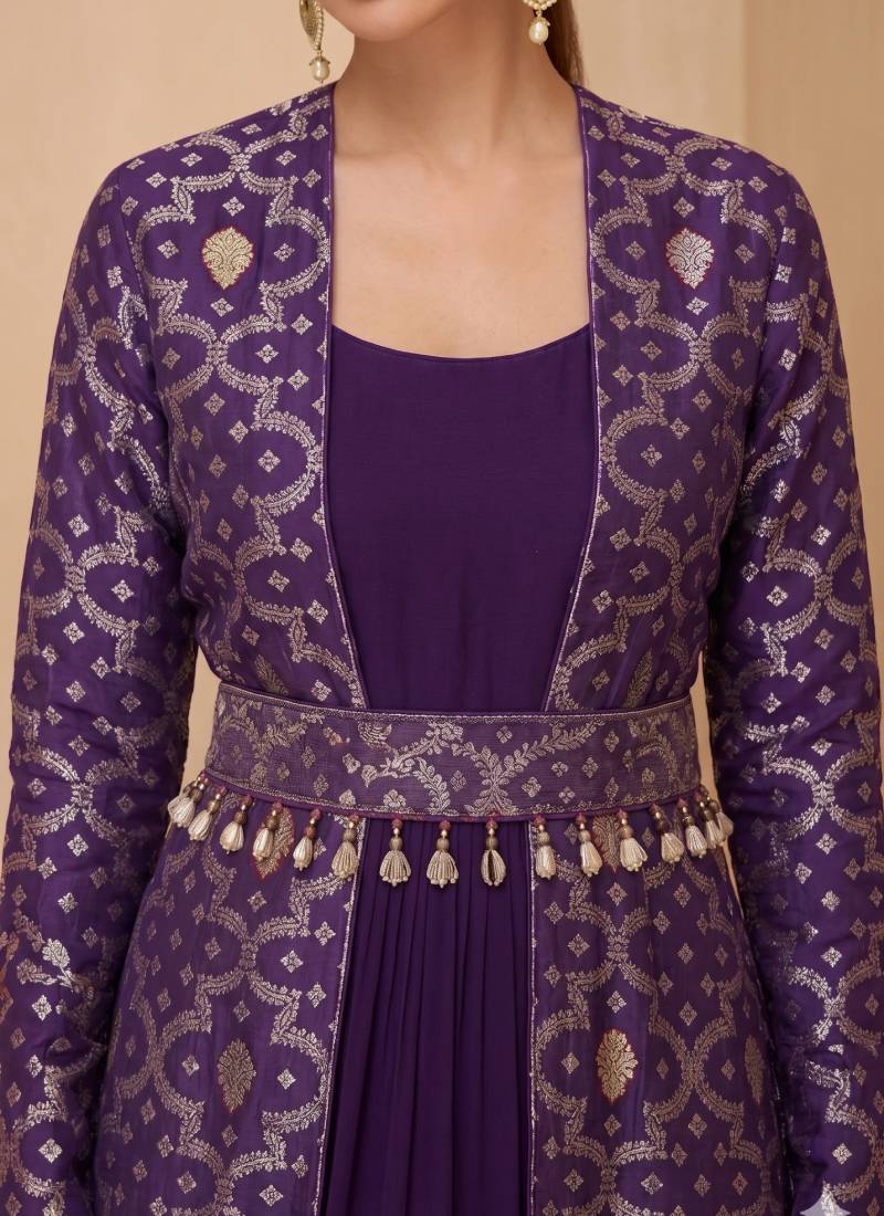 Purple brocade georeatte gown suit stitched