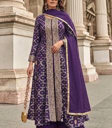 Purple zari jacqurad palazzo suit stitched