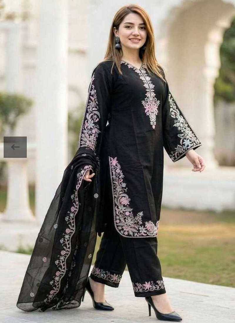 | Product Name | Black Embroidery Satin Fully Stitched Palazzo Suit Set | |