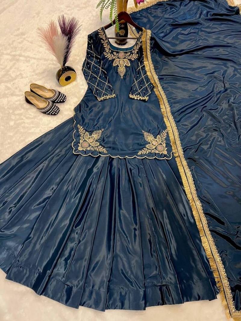 | Product Name | Blue Embroidery Crep Lehenga Dupatta With Top | |