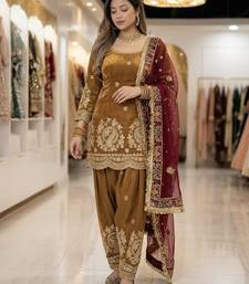 Gold embroidery fandy silk full stitched farshi salwar