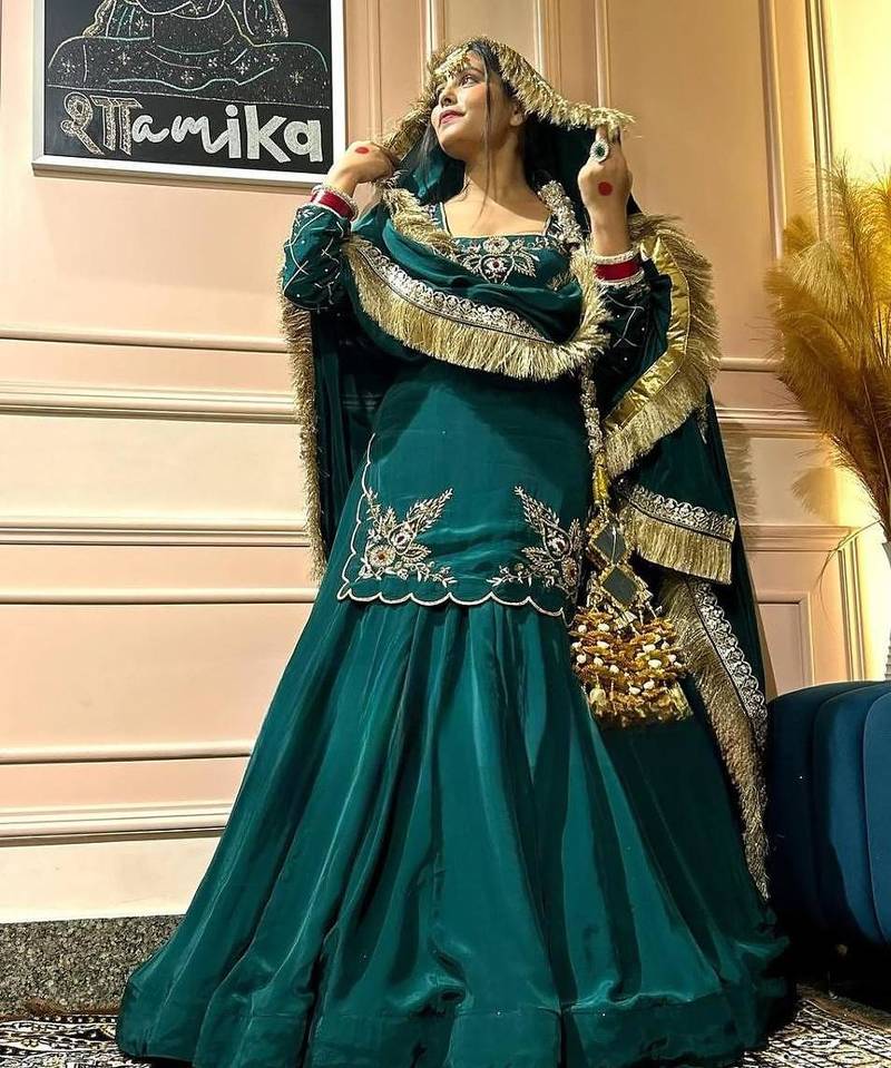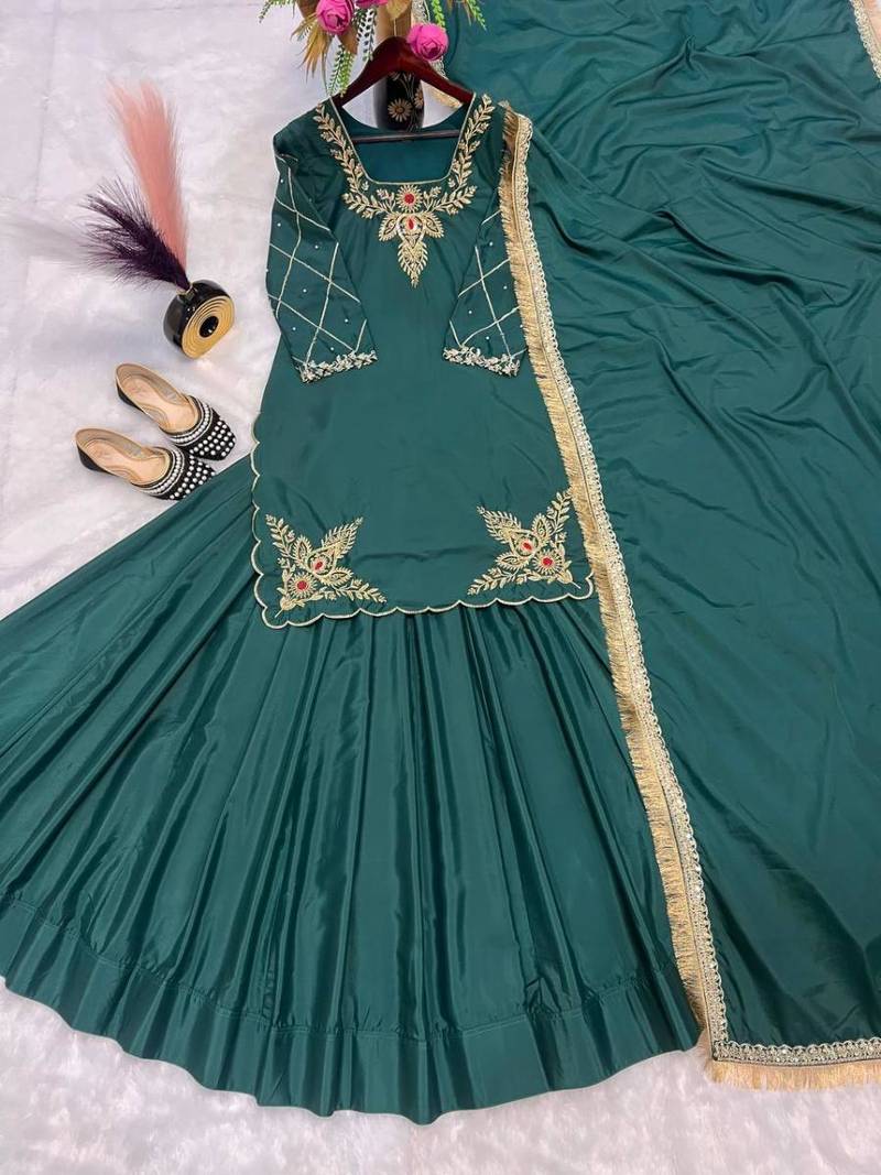 | Product Name | Green Embroidery Crep Lehenga Dupatta With Top | |