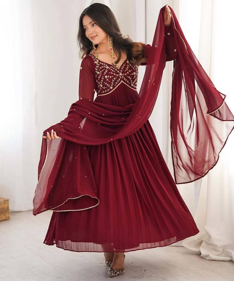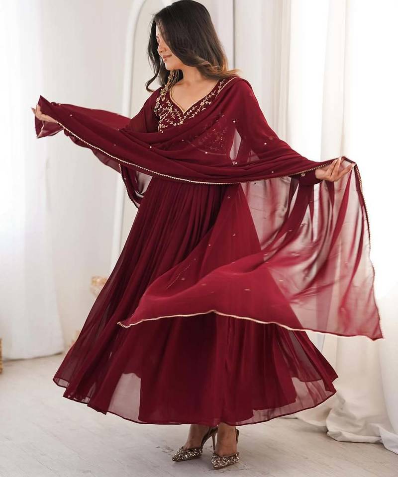 | Product Name | Maroon Embroidery Bids Full Stitched Anarkali Suit | |