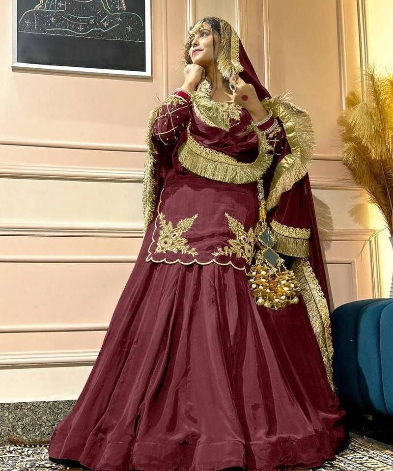 | Product Name | Maroon Embroidery Crep Lehenga Dupatta With Top | |