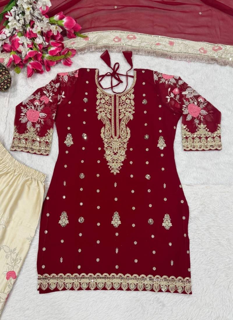 Maroon embroidery faux georgette fully stitched patiyala salwar