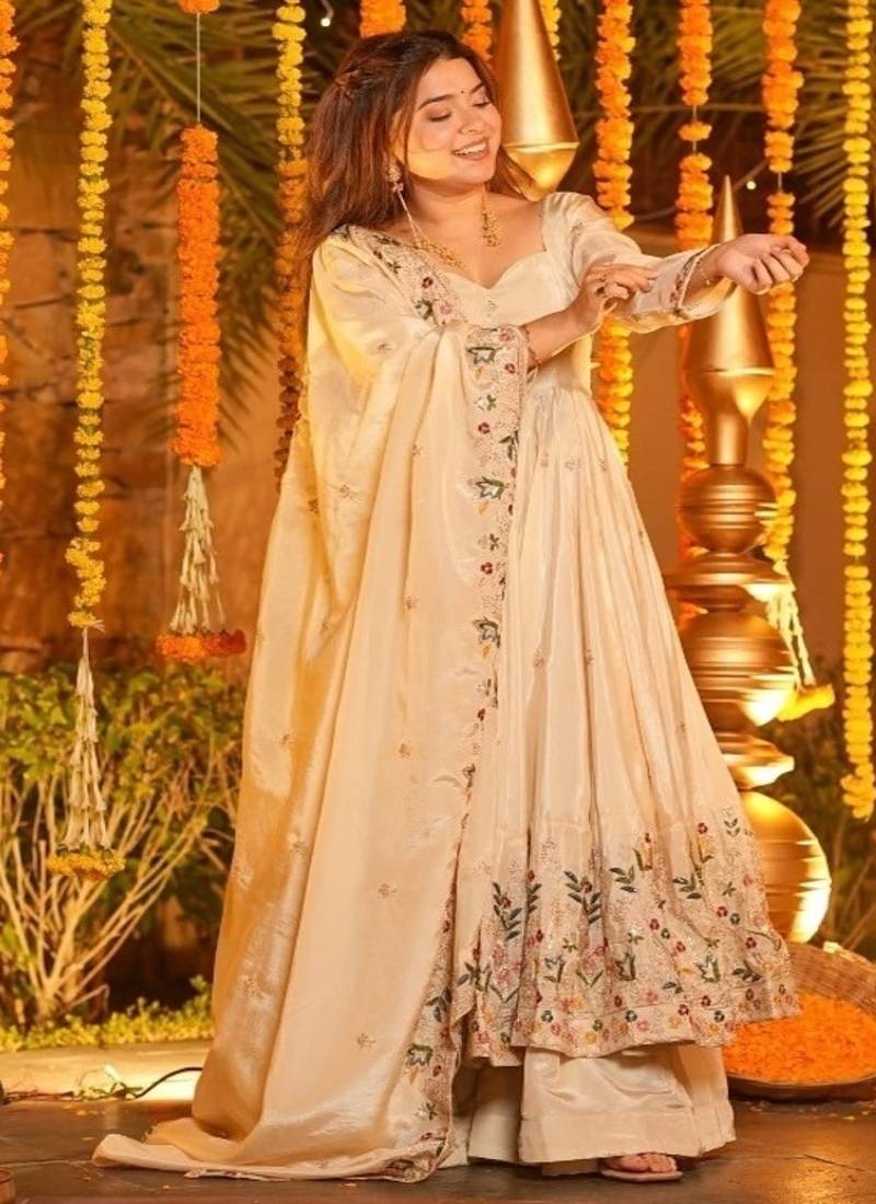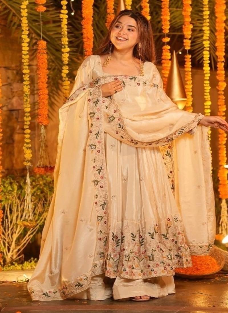 | Product Name | Off White Embroidery Crep Fully Stitched Anarkali Set | |