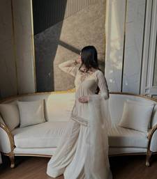 | Product Name | Off White Embroidery Satin Fully Stitched Sarara Plazo Suit Set | |