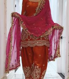 | Product Name | Orange Embroidery Fandy Silk Full Stitched Farshi Salwar | |