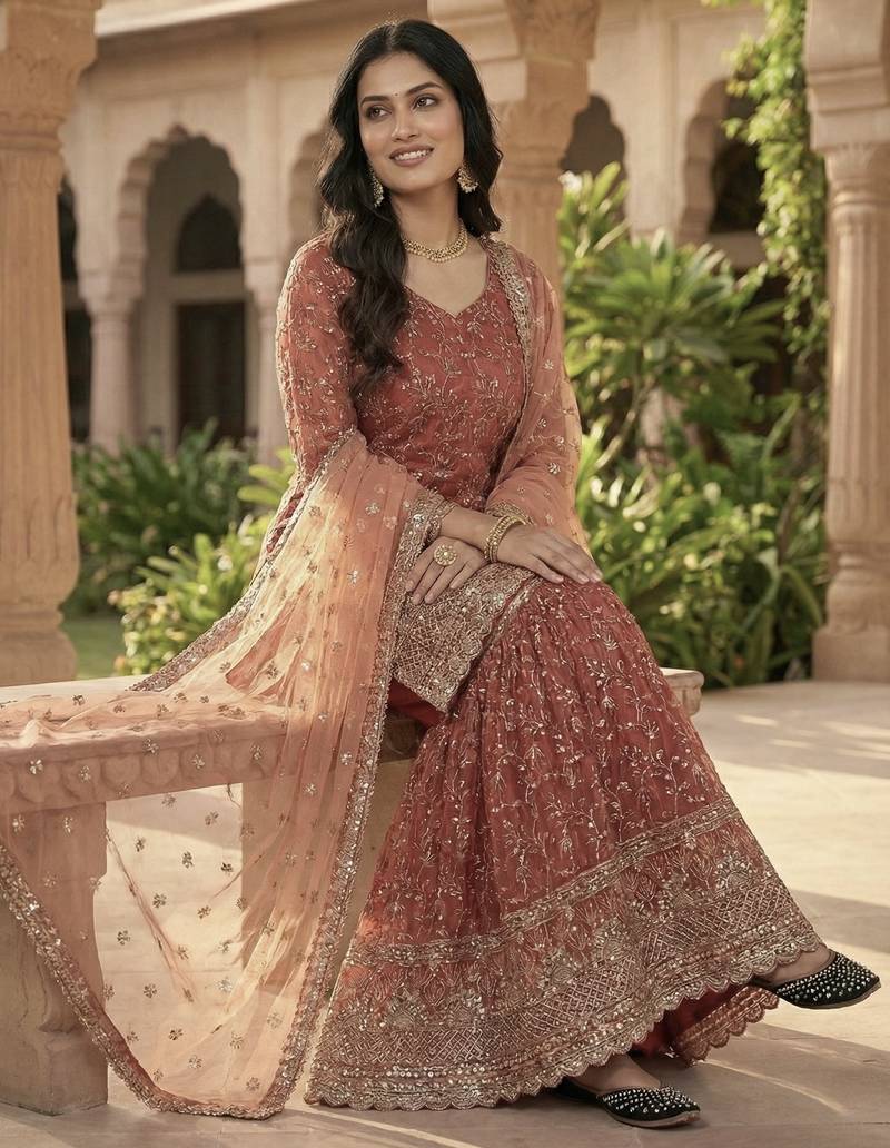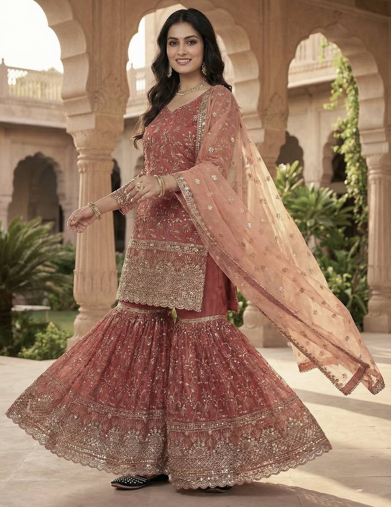 | Product Name | Orange Embroidery Fandy Silk Full Stitched Sharara Palazzo | |