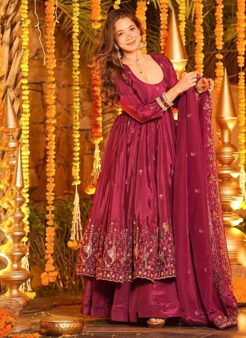 | Product Name | Rani Pink Embroidery Crep Fully Stitched Anarkali Set | |