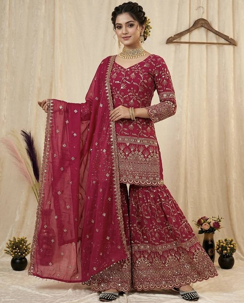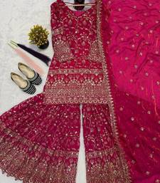 Rani pink embroidery fandy silk full stitched sharara palazzo