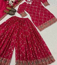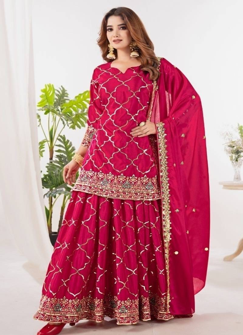 Rani pink embroidery silk fully stitched sharara palazzo suit set