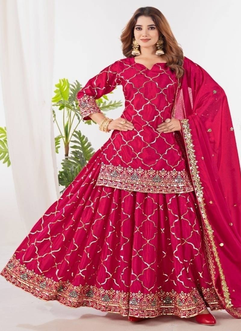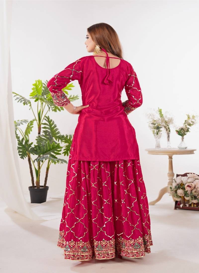 | Product Name | Rani Pink Embroidery Silk Fully Stitched Sharara Palazzo Suit Set | |