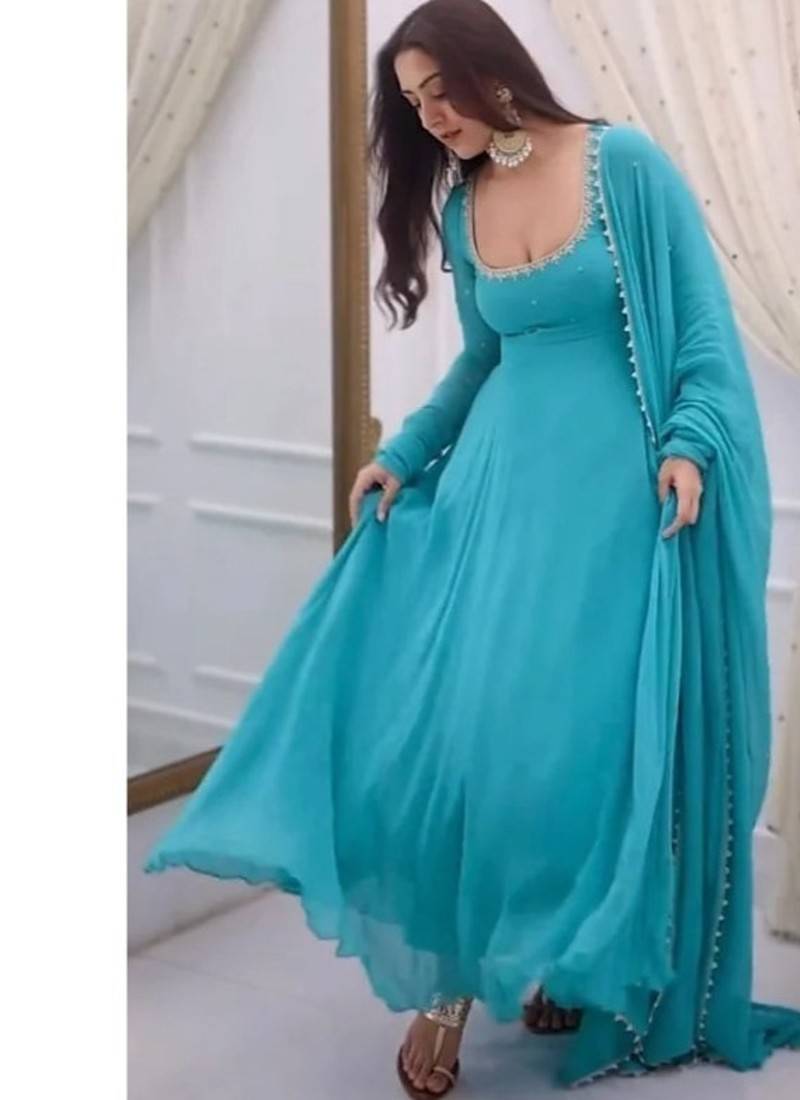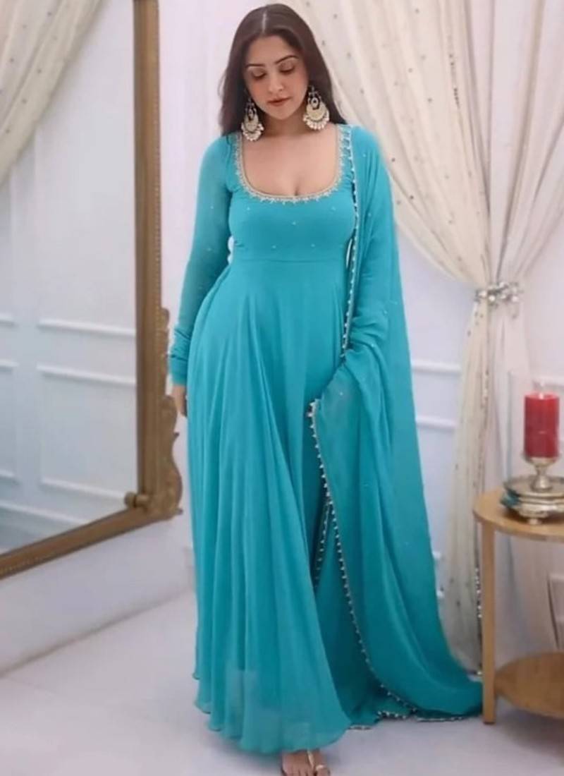| Product Name | Sky Blue Embroidery Faux Georgette Fully Stitched Anarkali Suit Set | |
