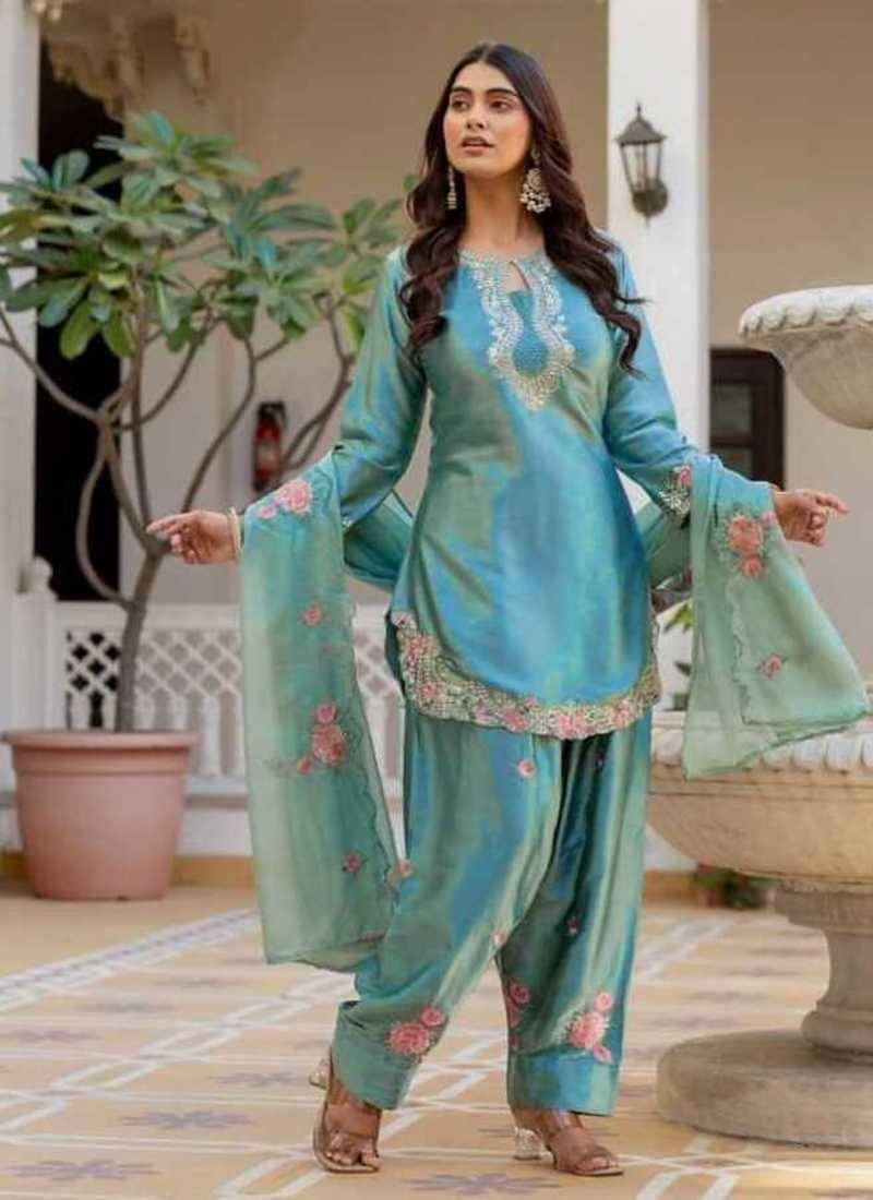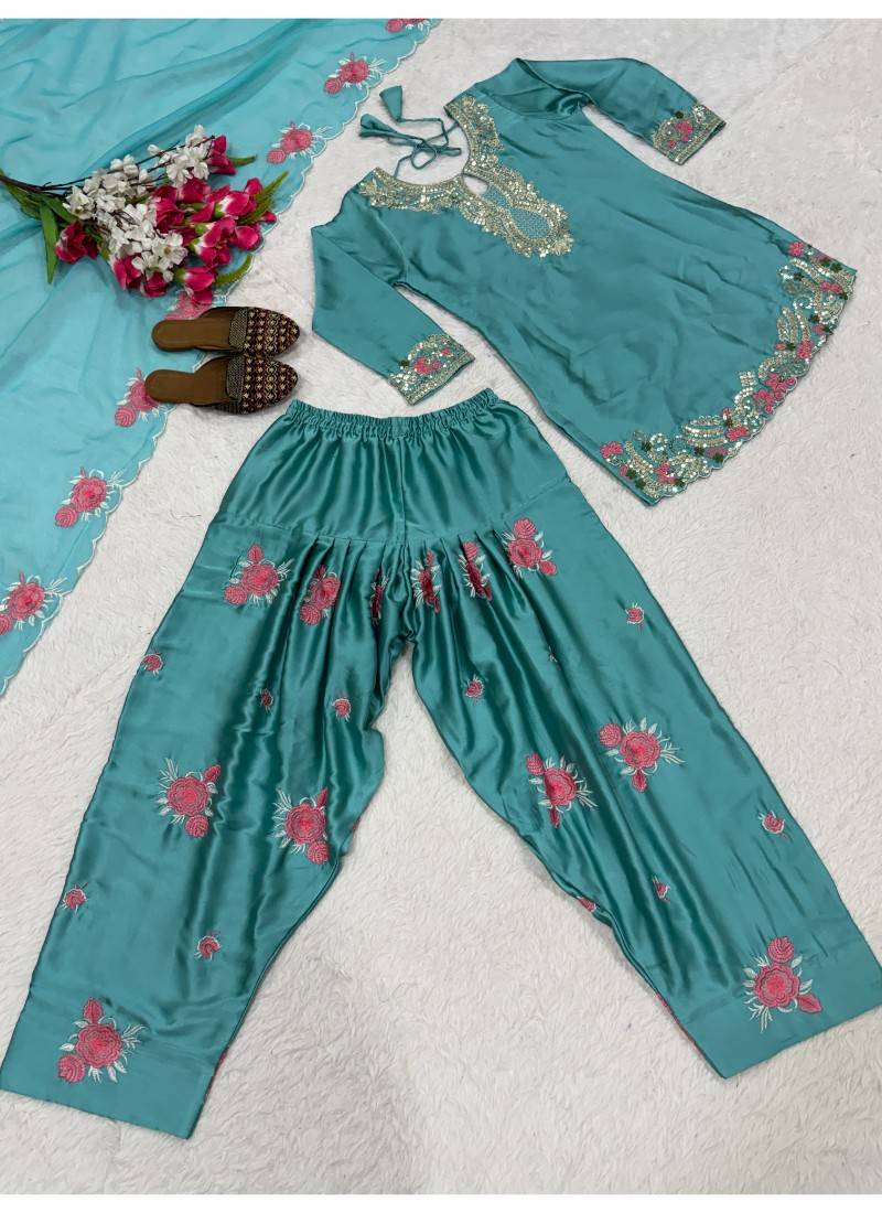 | Product Name | Sky Blue Embroidery Japan Satin Fully Stitched Farshi Salwar Suit Set | |