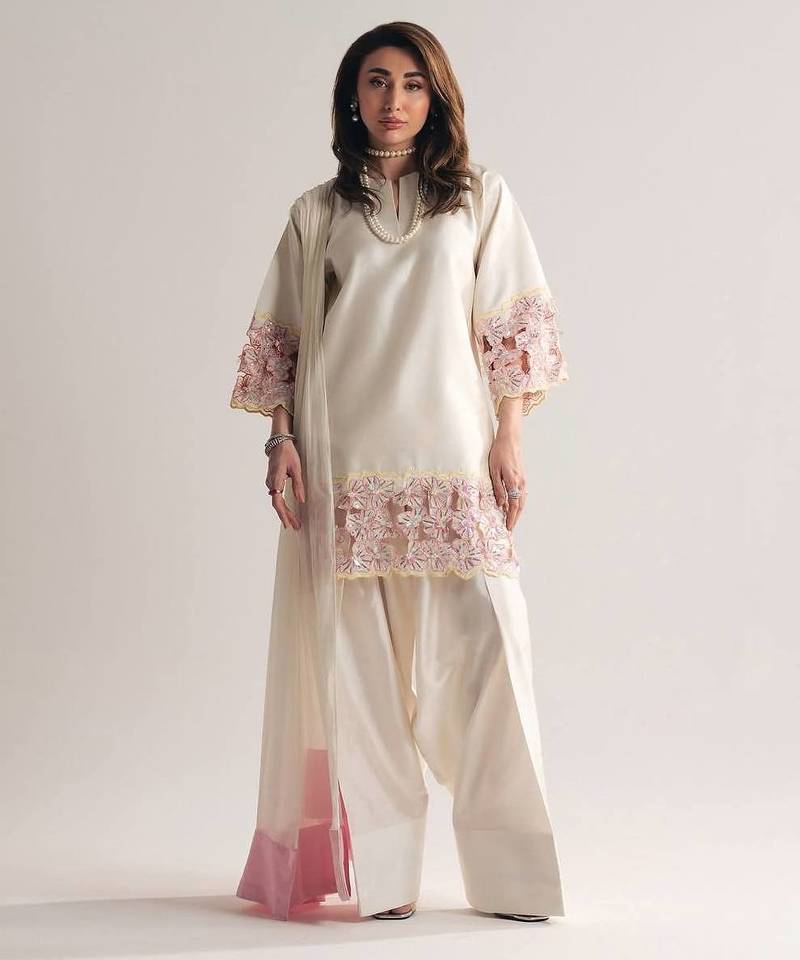 | Product Name | White Embroidery Moti Hand Full Stitched Farshi Salwar | |