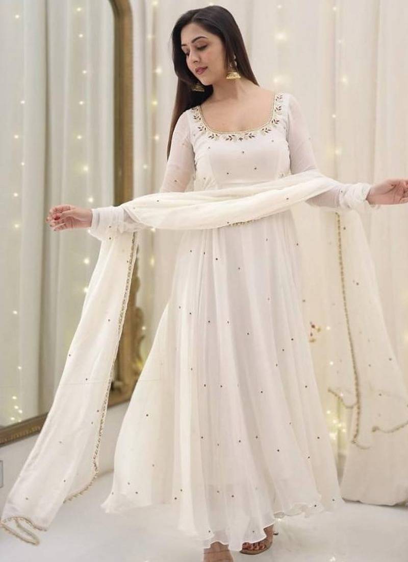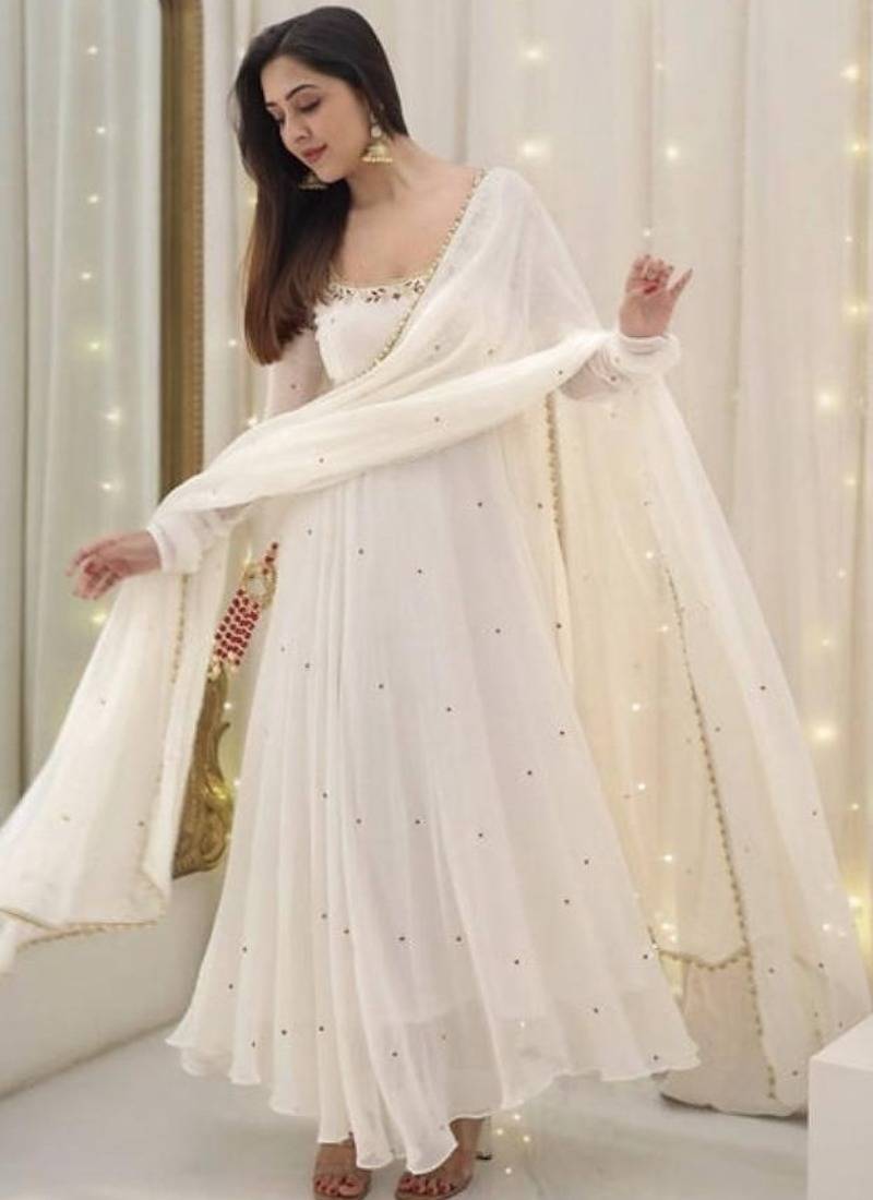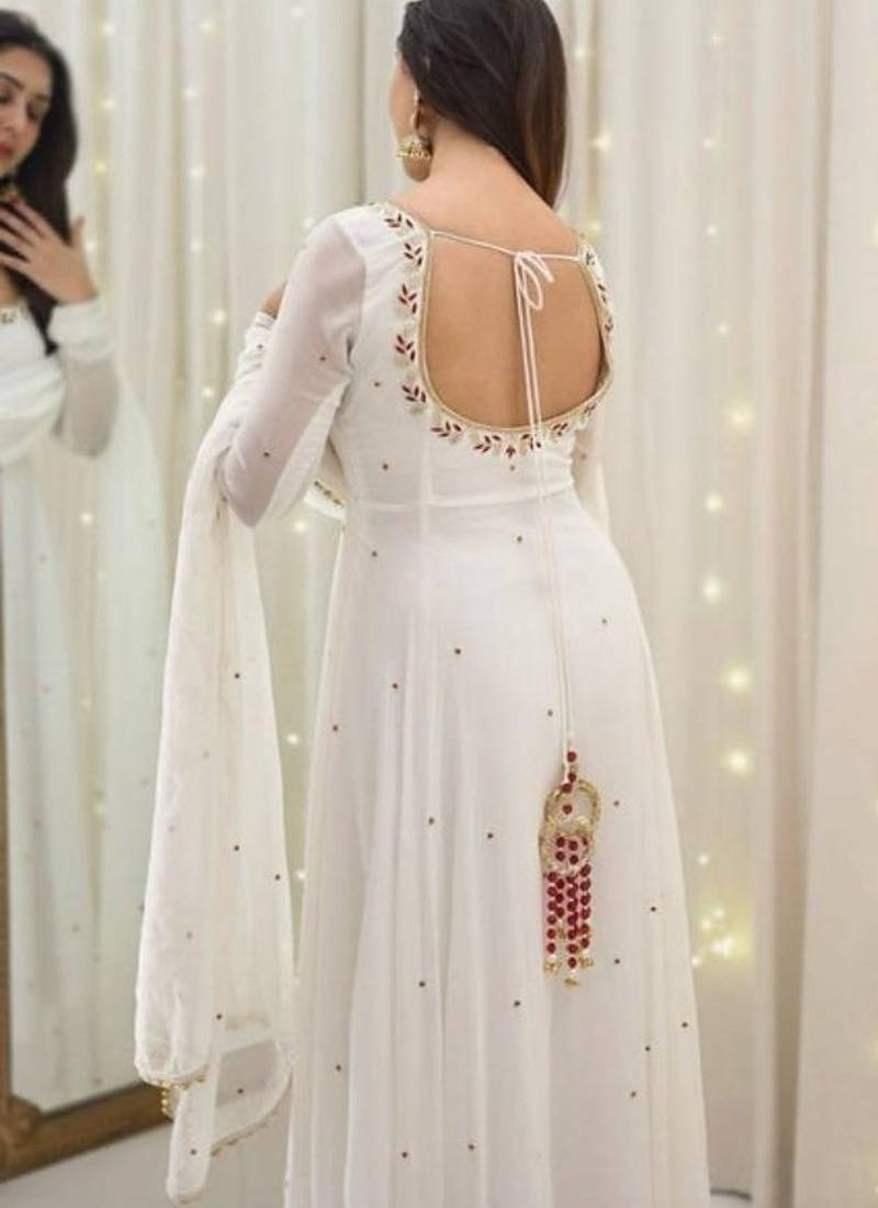 Whiteburds embroidery sequence full stitched anarkali gown
