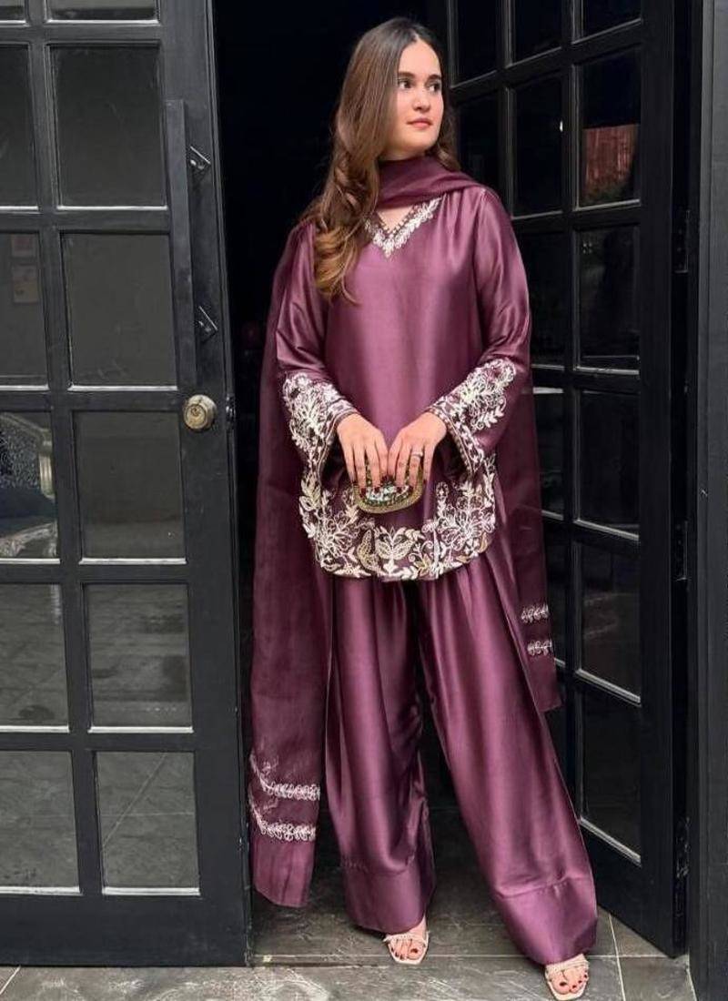 | Product Name | Wine Embroidery Crep Silk Full Stitched Farshi Salwar | |