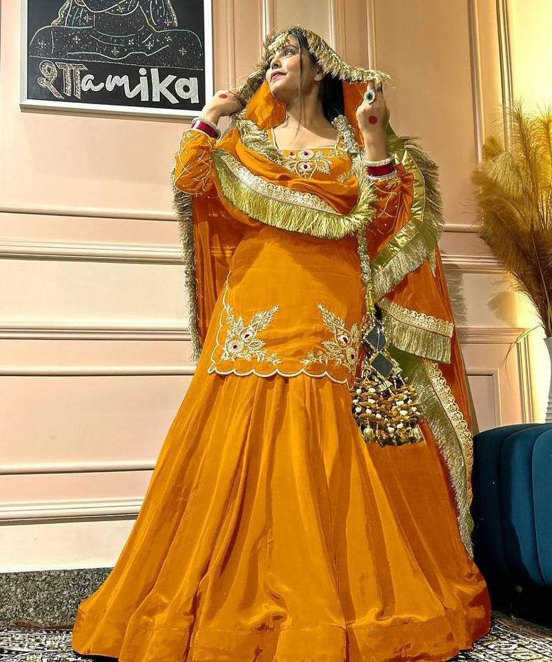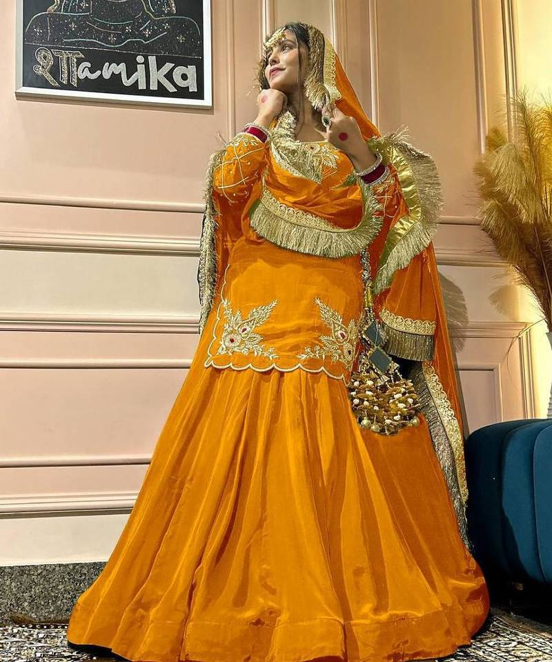 | Product Name | Yellow Embroidery Crep Lehenga Dupatta With Top | |