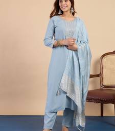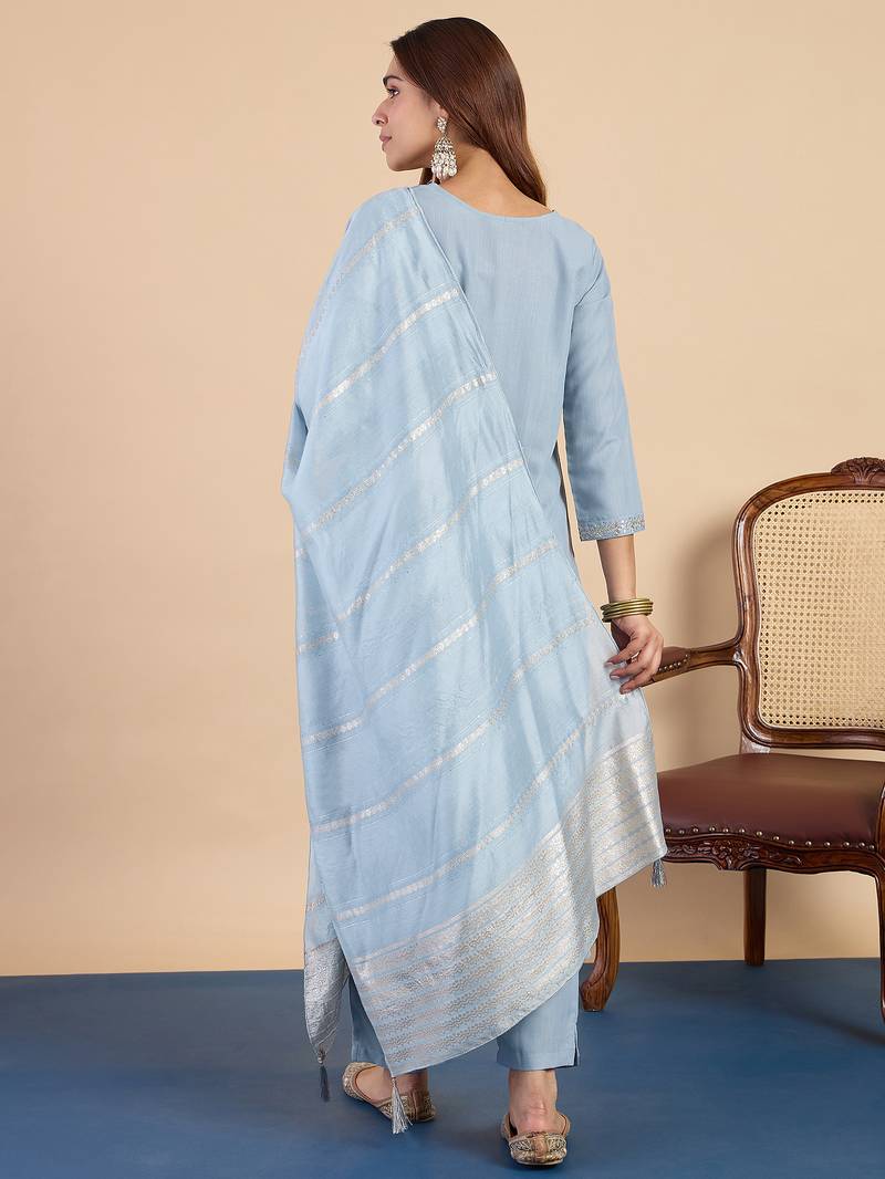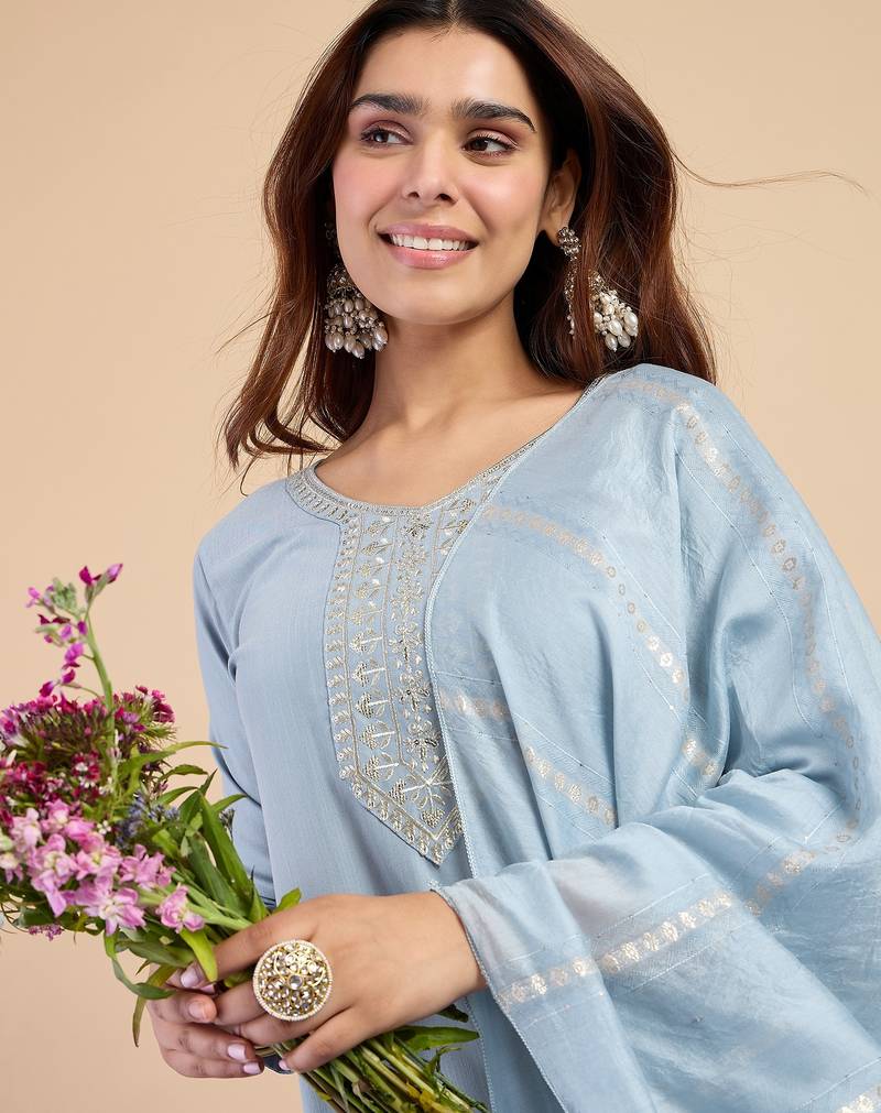 Grey women kurta pant dupatta set stitched