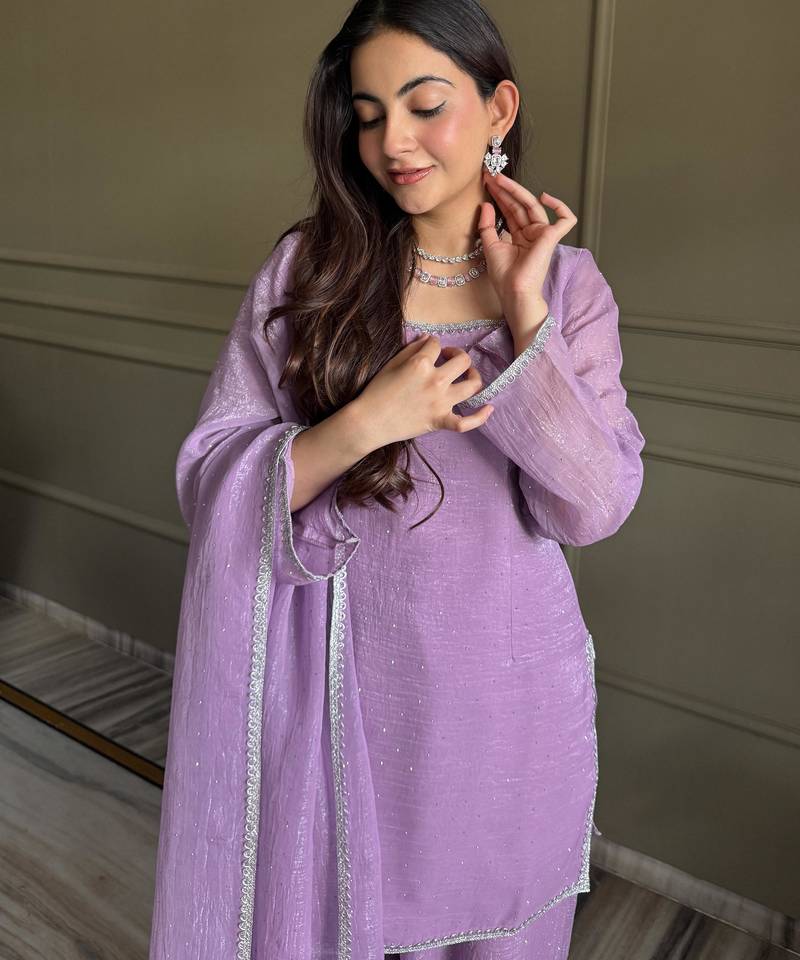 | Product Description | The Straight Kurta Is Crafted In Lightweight Crunchy Silk And Adorned With Delicate All Over Siroski Diamond Work That Adds A Gentle Festive Glow. A Finely Detailed Square Neckline Highlighted With Fancy Lace Work Enhances The Front, While Matching Lace Accents On The Sleeves And Hem Complete The Refined Look. The Full Sleeves Give It A Modest Yet Elegant Appeal, Making It Suitable For Both Day And Evening Wear.